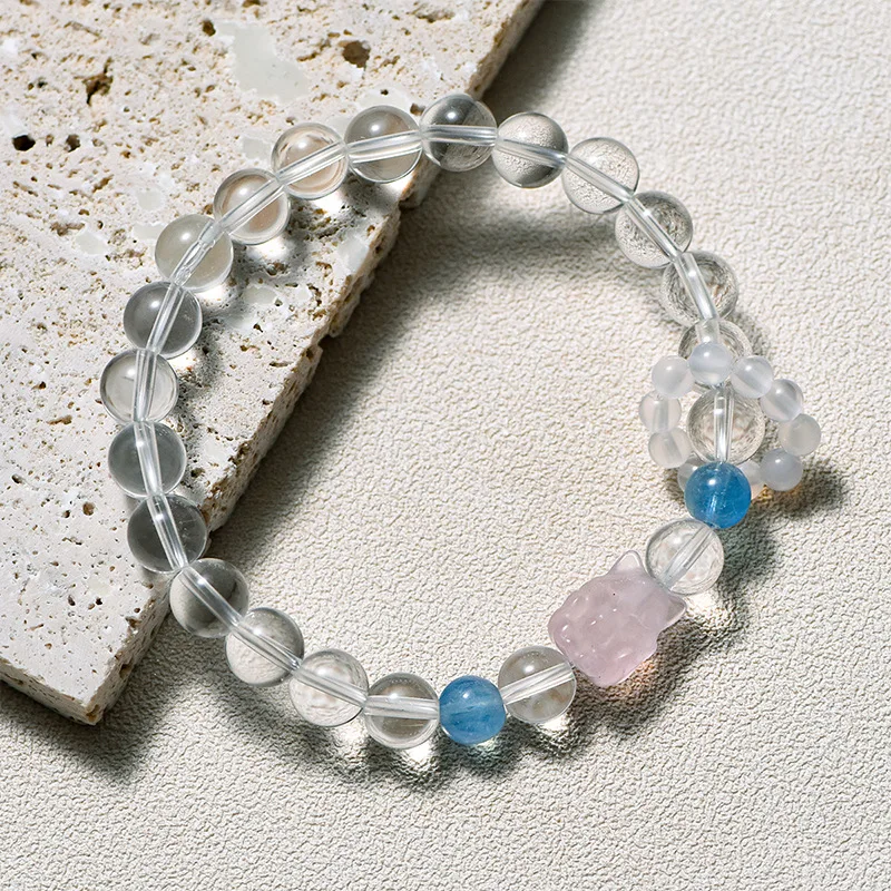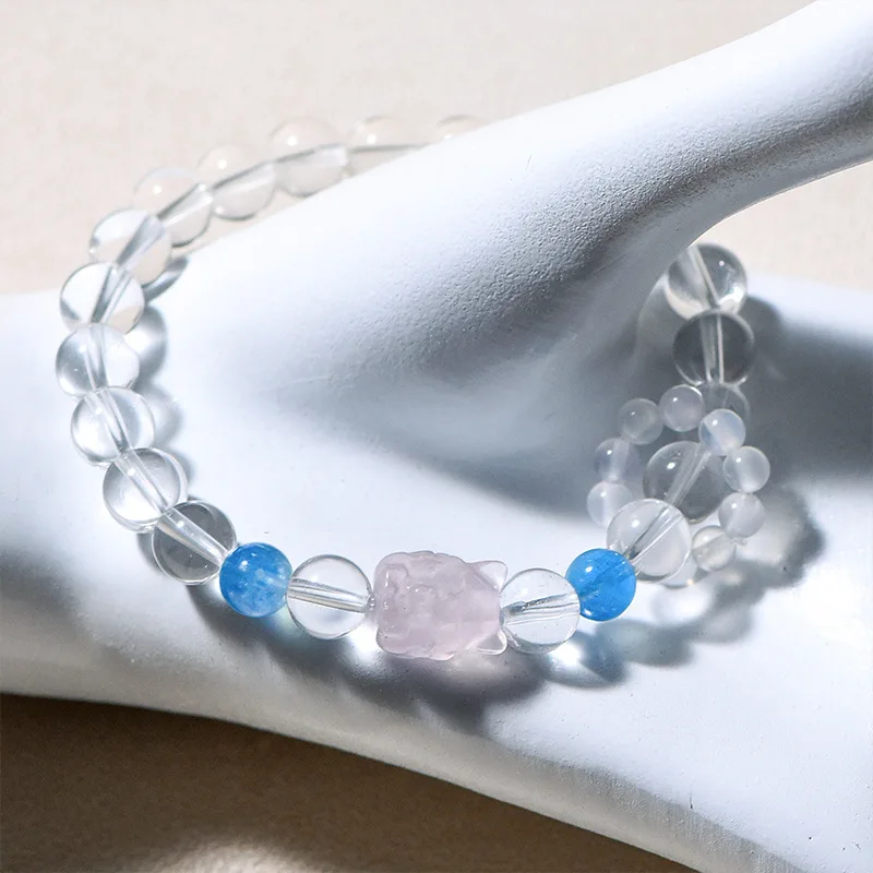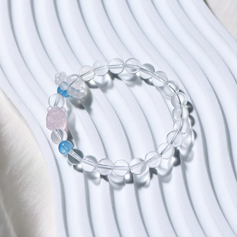 100% natural Hot Selling Wholesale natural Design 8mm clear quartz Crystal Bracelet with Fox Accessory