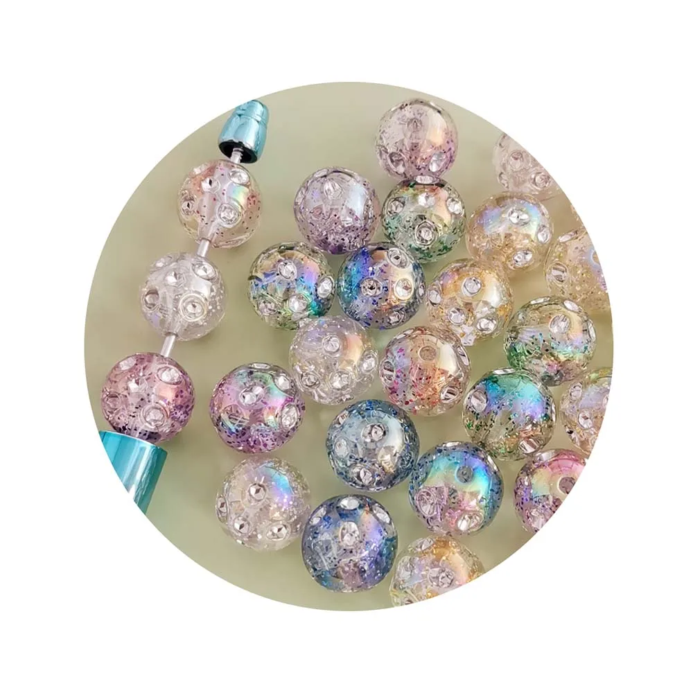 100pcs 15mm Crystal Rhinestones Paved Acrylic Jelly Gumball Beads Ornament Accessories Necklace Beading DIY Pens