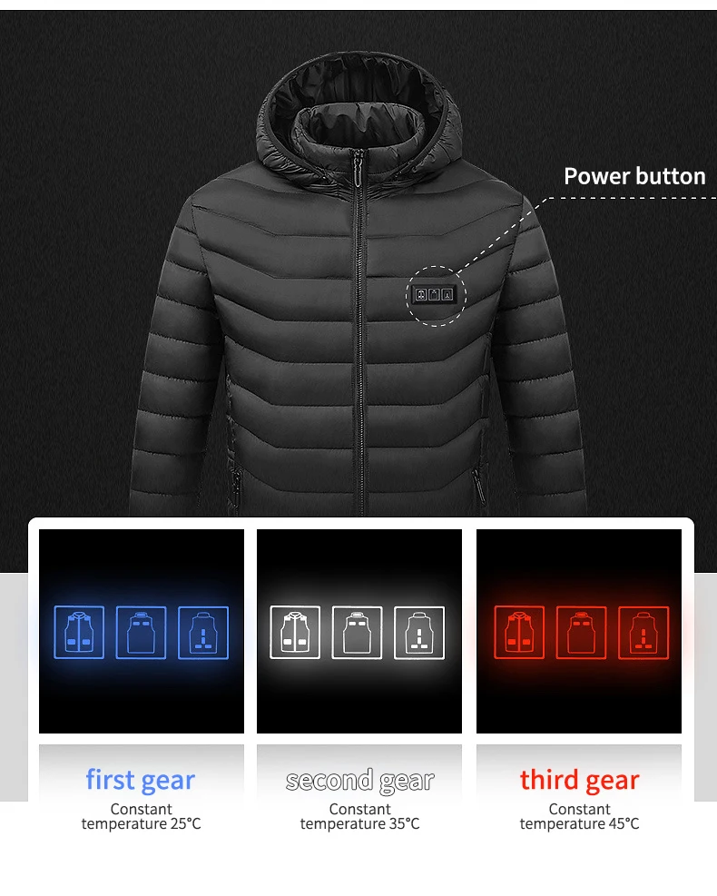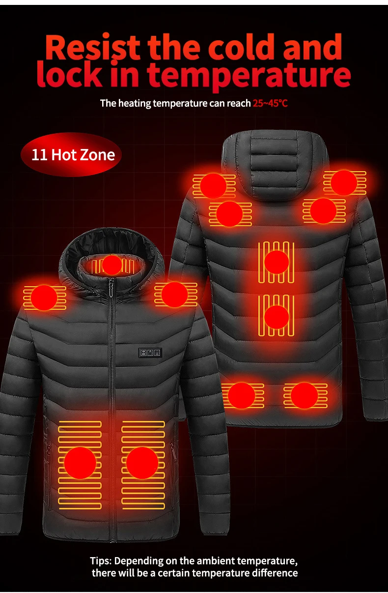 11 Zones electric heated clothing waterproof Rechargeable heated hoodies custom logo self heating jacket for winter