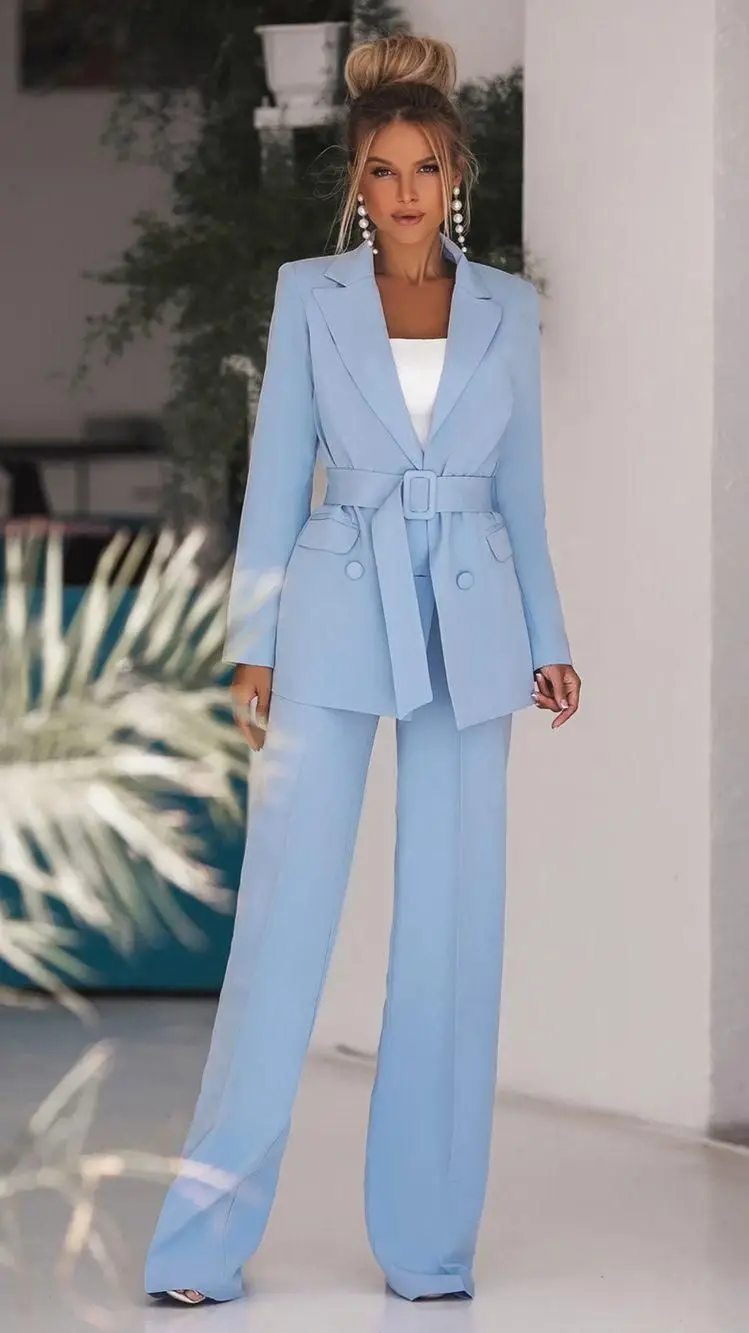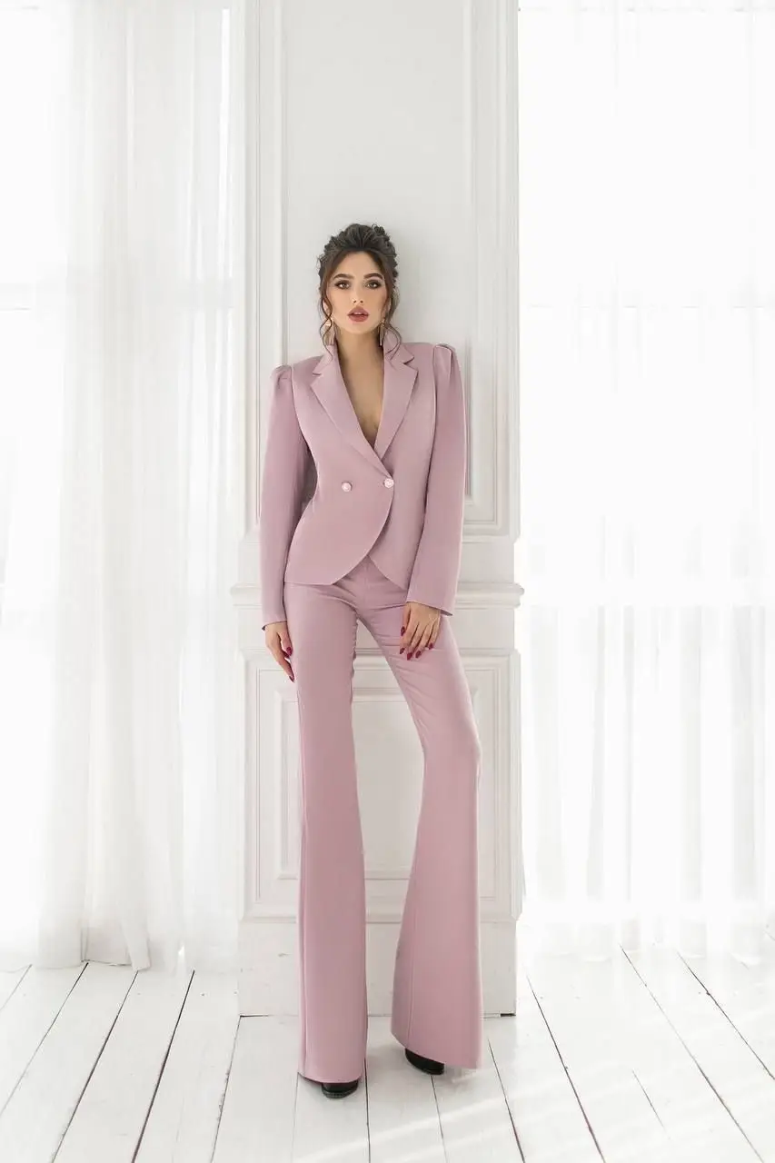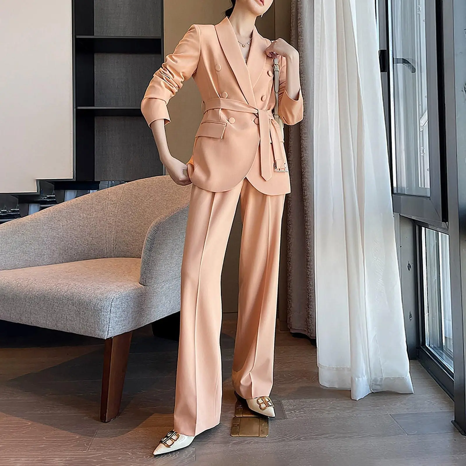 2 Pieces Suit Set Shawl Collar Straight and Smooth Formal Pant Suit Office Lady Uniform Designs for Women Business Work Wear