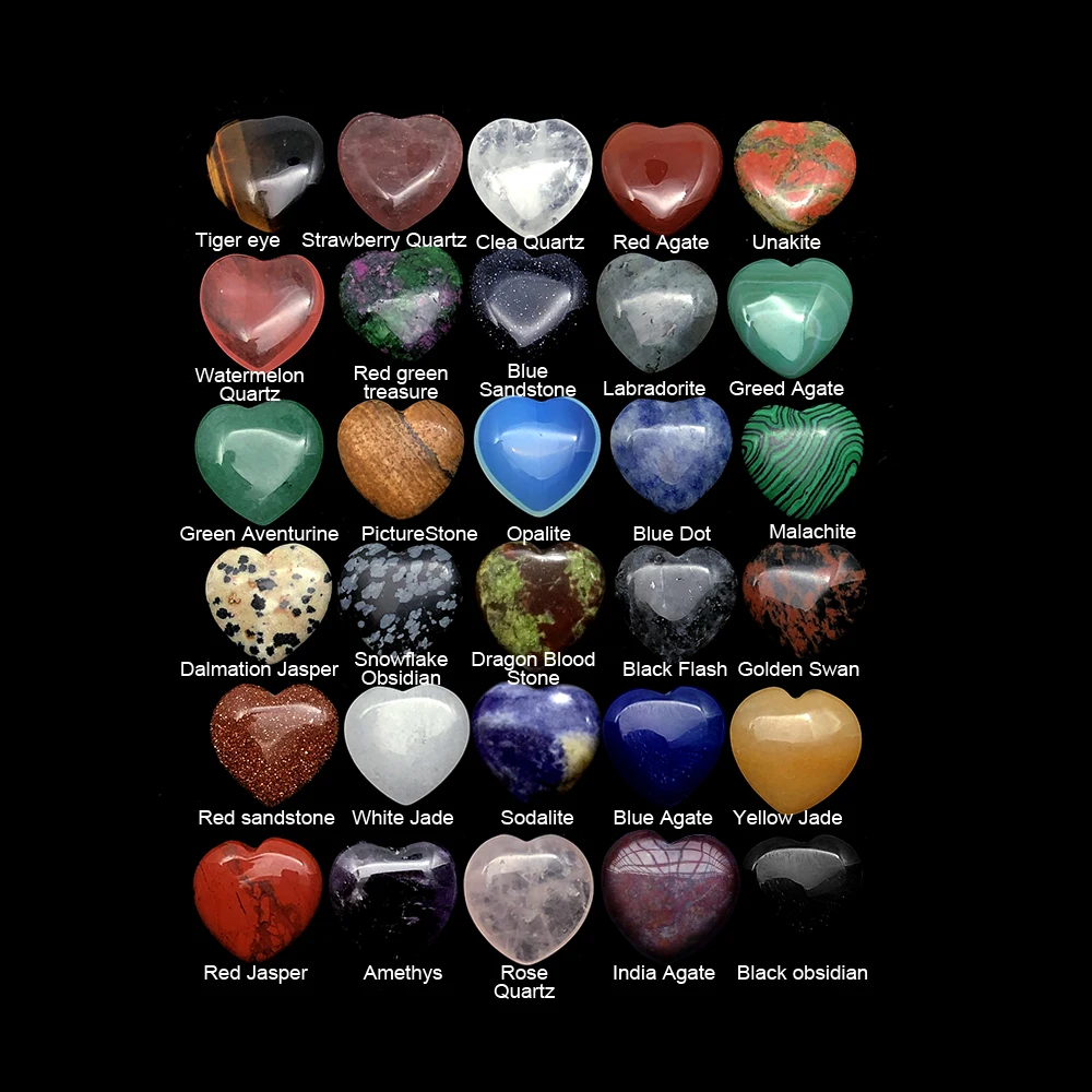 Rose Quartz Clea Quartz, Clea Quartz,Unakite ,Golden Swan,Amazonite,Green Aventurine,Picture stone,Opalite,Blue Sandstone, Red sandstone,Tiger eye,Amethyst,Cherry agate,Sodalite,Rhodonite,Red Jasper,India Agate,Black obsidian,Howlite,Malachite, Blue Howlite,Watermelon Quartz,Yellow Jade,Blue Tiger Eye,Rad Tiger Eye,Gold Tiger Eye,Snowflake Obsidian,Black Flash,Labradorite,Xiuyan Green Jade,Dalmation Jasper,Zebra Stone,Dragon Blood Stone,White Jade,Strawberry Quartz,Bloodstone,Grey Agate,Red Agate,Red Stripe Agate,Crazy Agate,Greed Agate,Multi Flourite,Green Dot Jade,Picasso,Picture Stone,LemonJad,PictureStone