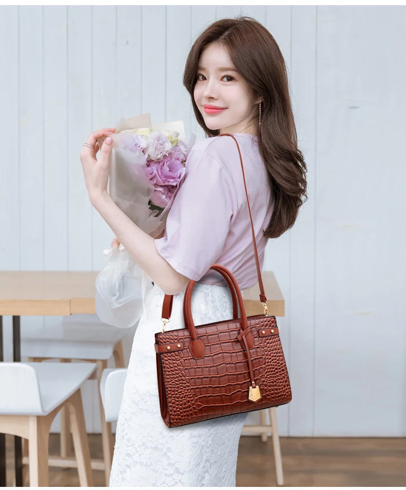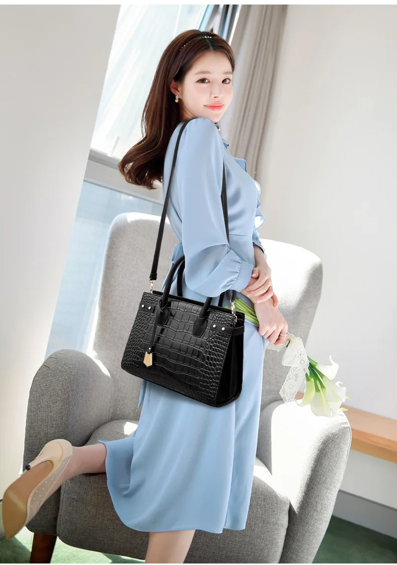 2021 Hot Fashion Big Capacity Women Handbags Crocodile Pattern Office Lady Working Bags Fashion PU Leather Handbags
