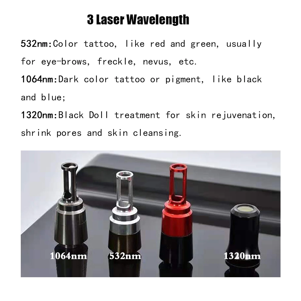 1064nm:Dark color tattoo or pigment, like black and blue;