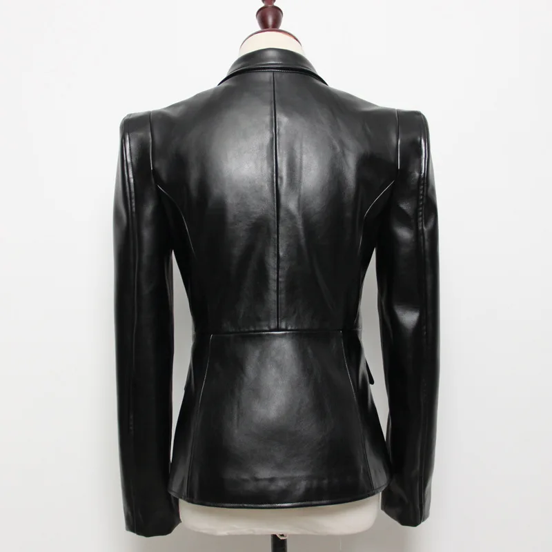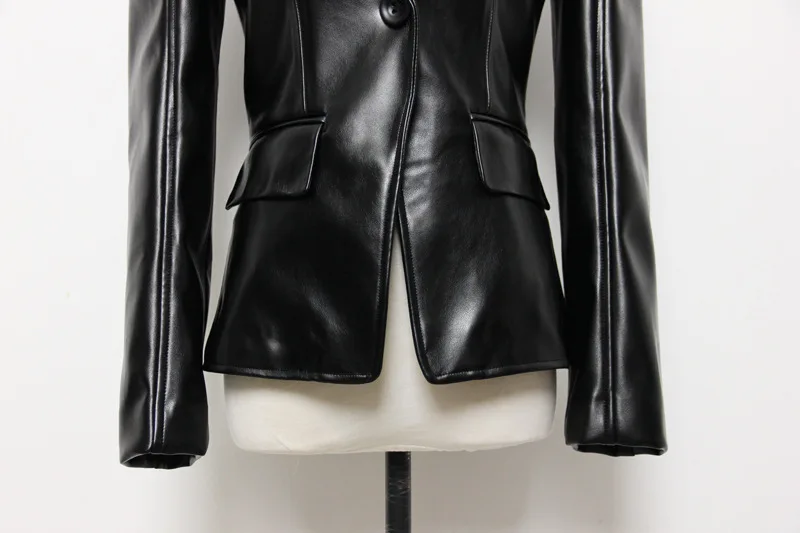 Product Description 2022 New Arrivals fashion PU leather women blazer single button slim ladies blazer office ladies...