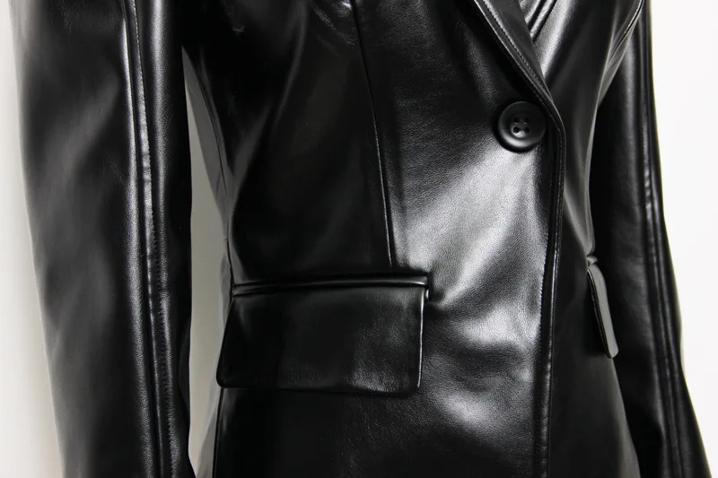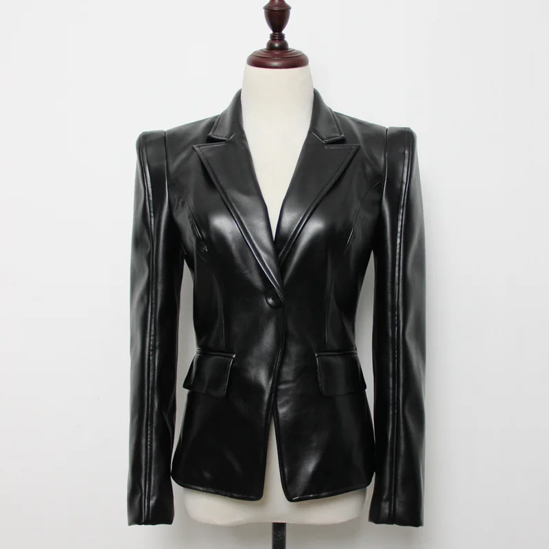 2022 New Arrivals fashion PU leather women blazer single button slim ladies blazer office ladies jacket