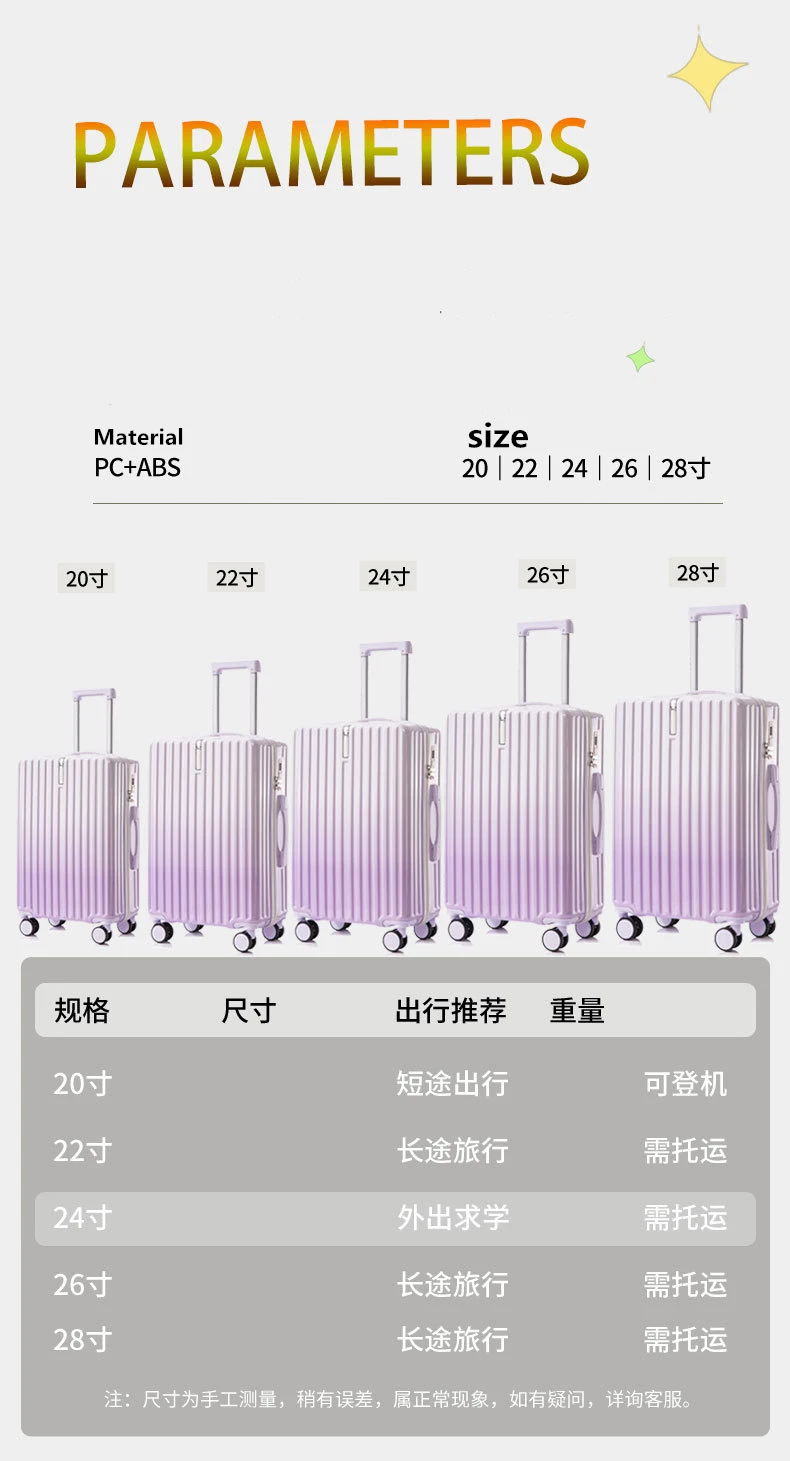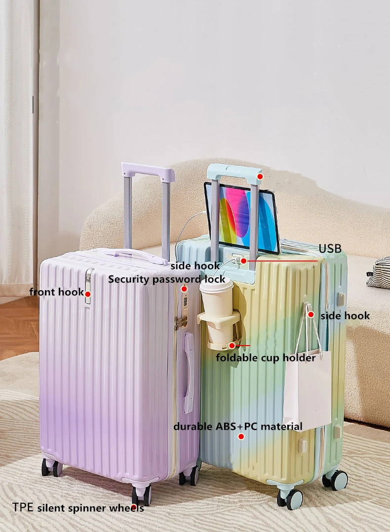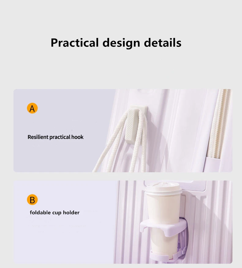luggage with spinner wheels boasts exceptional strength and toughness. It withstands damage and deformation even amidst the rigors of travel. * Intelligent Interior Design: Featuring a thoughtful interior layout and multiple pockets catering to diverse storage needs, our carry on suitcases with wheels facilitates effortless organization of your travel essentials. Enjoy a hassle-free packing experience with ease. * Convenient Hook Design: This carry-on luggage protruding side hook allows for hanging personal belongings, freeing up your hands for a hassle-free travel experience. |