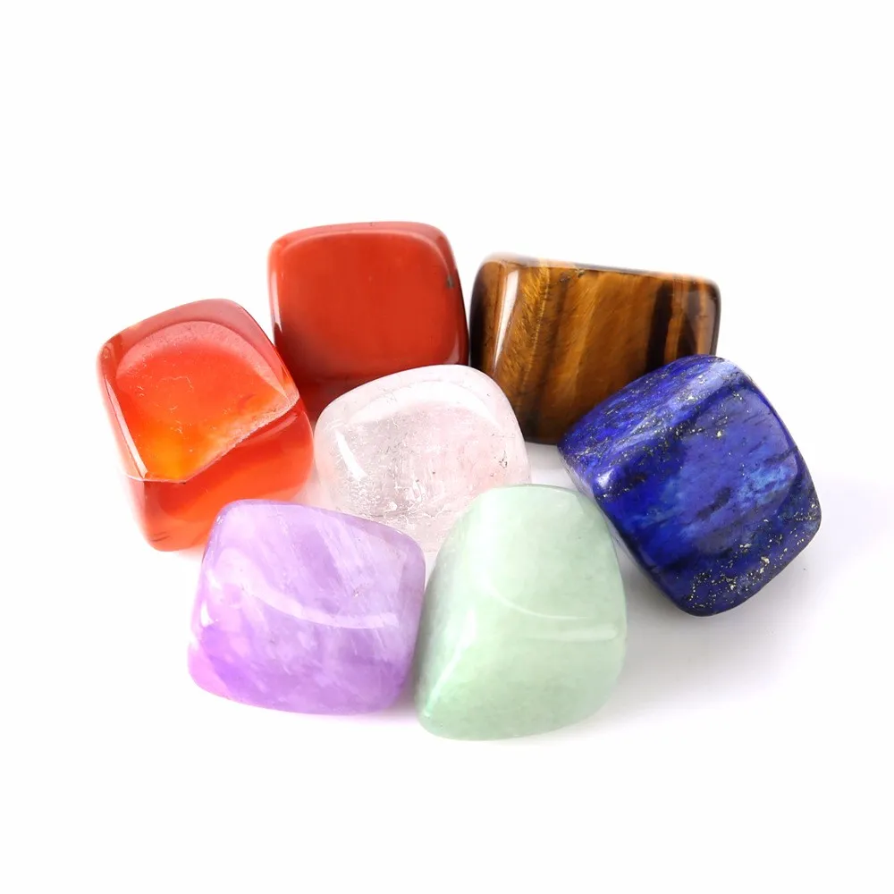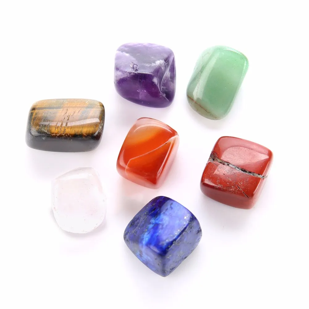 Amethyst(Crown Chakra),Clear Crystal(Third-eye Chakra),Lapis Lazuli(Throat Chakra),Green Aventurine(Heart Chakra),Yellow Jade(Solar Plexus Chakra),Carnelian(Sacral Chakra),Red Jasper(Root Chakra)