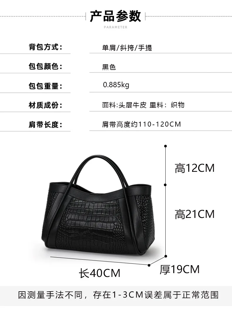 2ndr Branded Custom 1:1 High Quality Real Leather Tote Bag Luxury Crocodile Pattern Cowhide Handbag