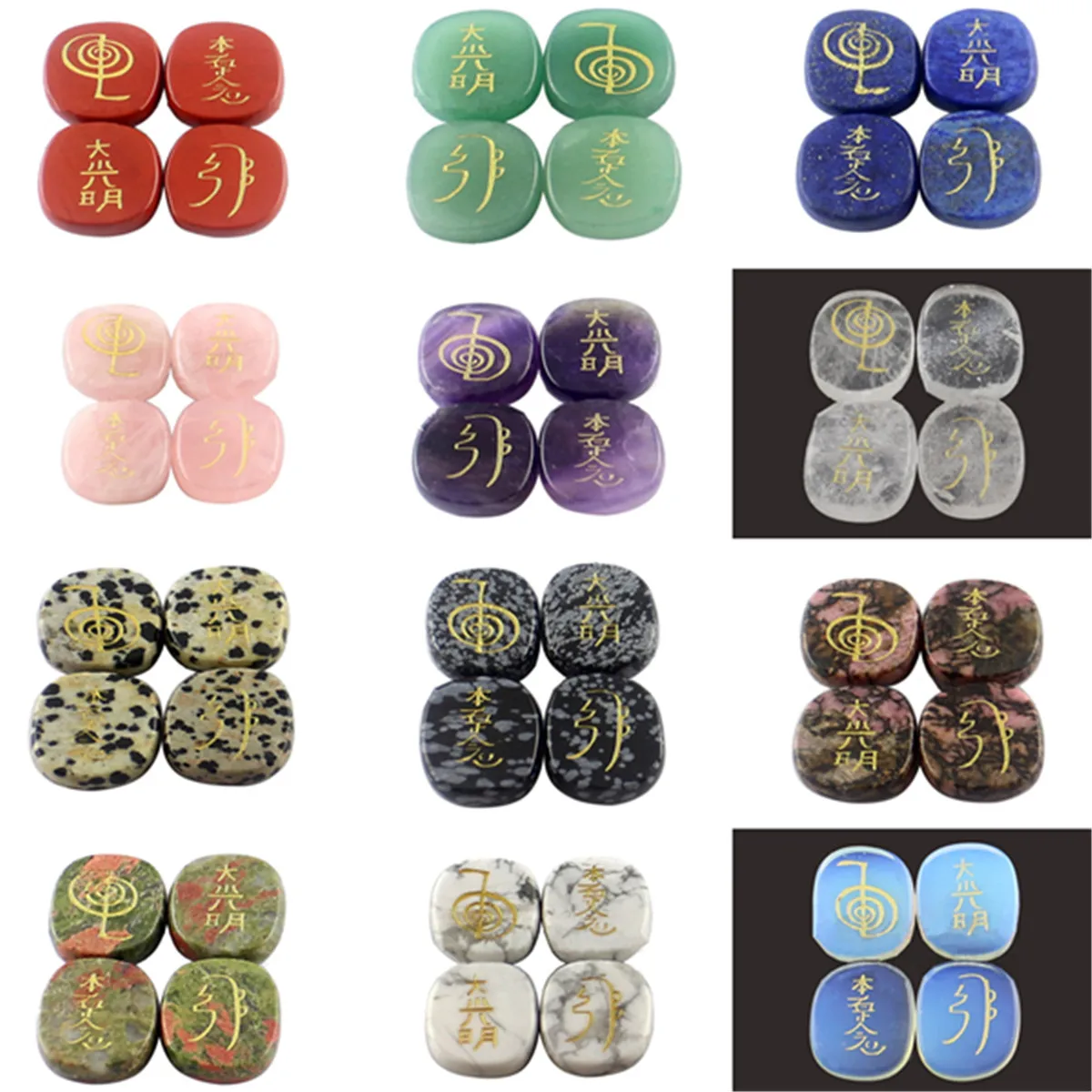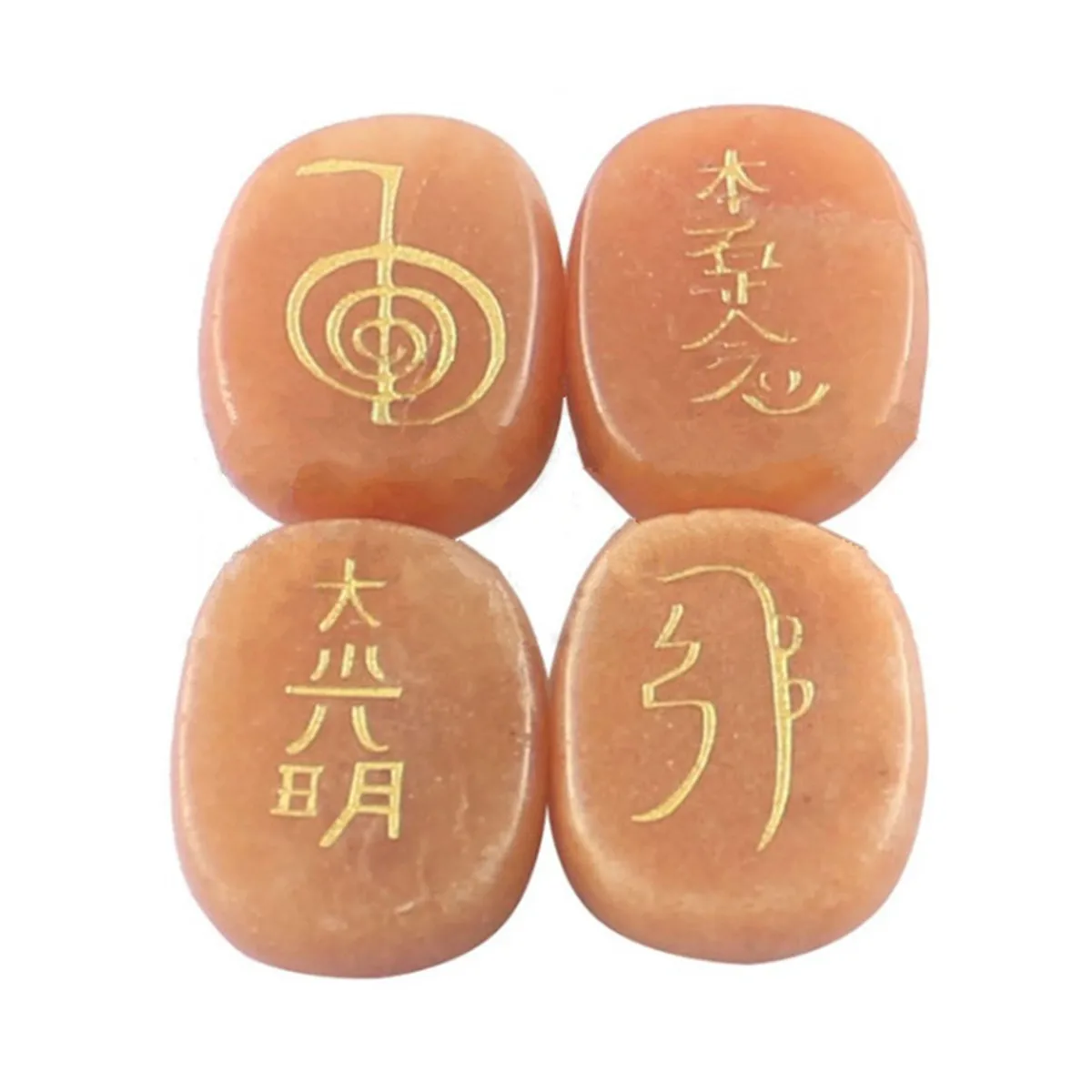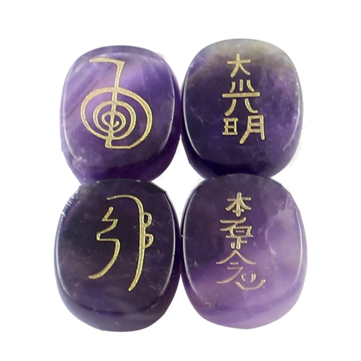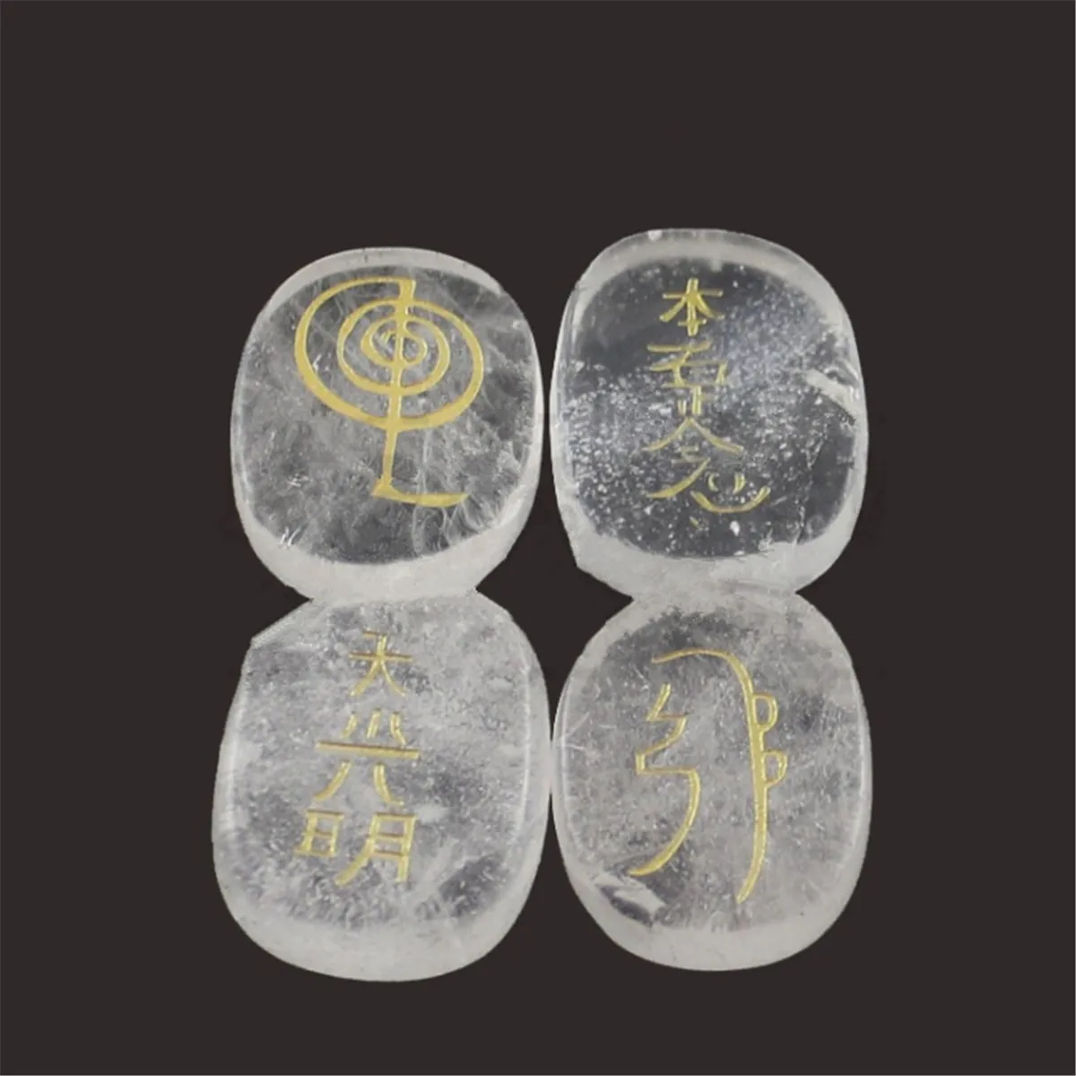 Package Included:1 Set (4 Pcs) Engraved Usui Reiki Symbol Healing Energy Sanskrit Palm Crystal Stone