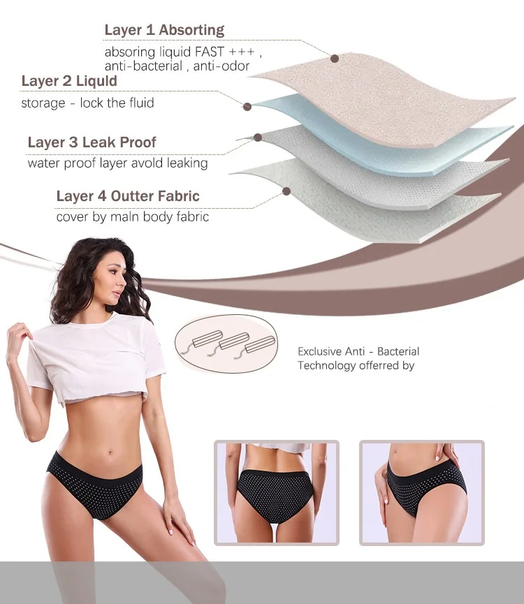 OEM Customized 4 Layer Leak Proof Period Pants Both Side Brushed Comfortable Washable Reusable Eco Friendly Menstrual Panties