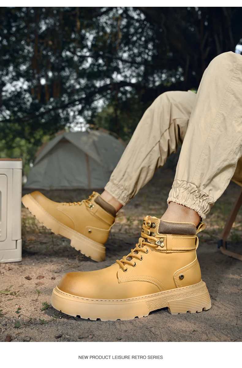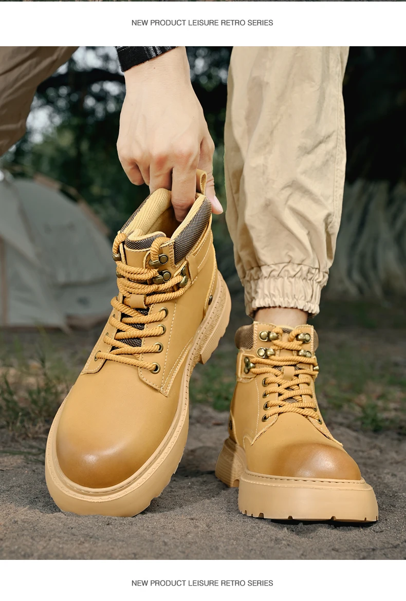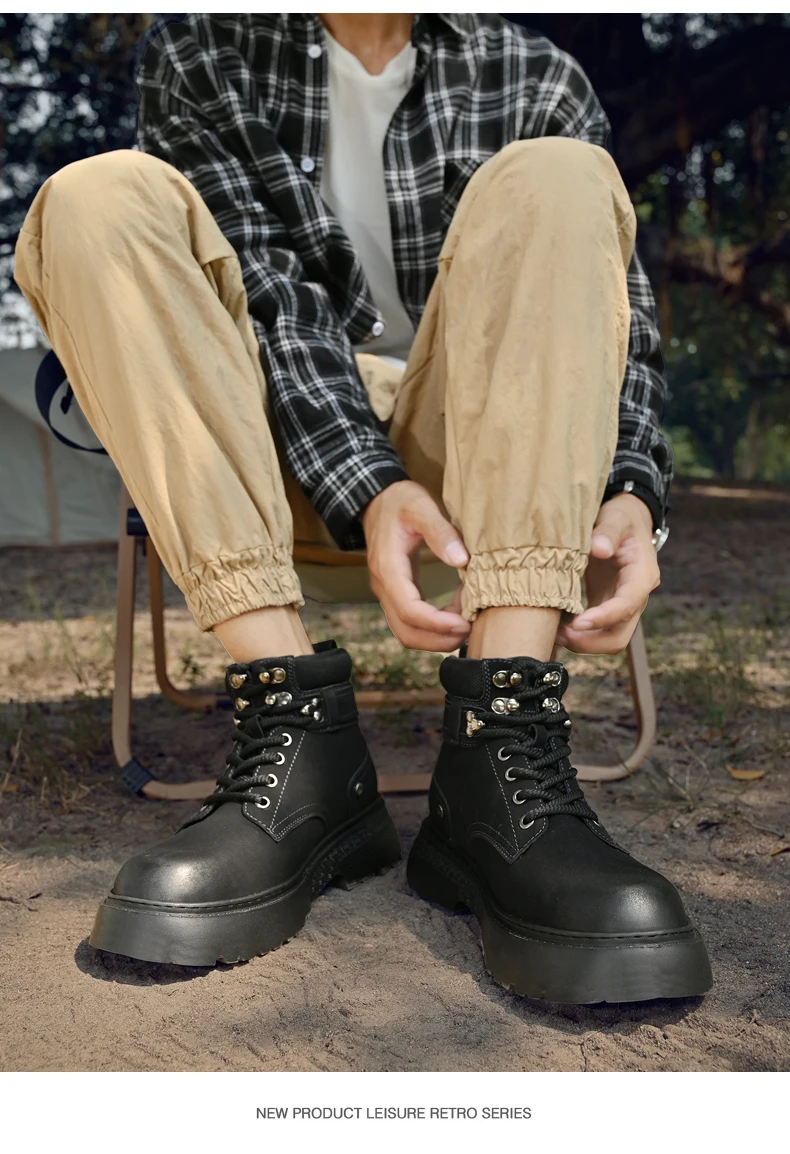 Accept OEM Service Custom LOGO Pure Genuine Leather Hand Made Waterproof High Top Martin Boots For Men