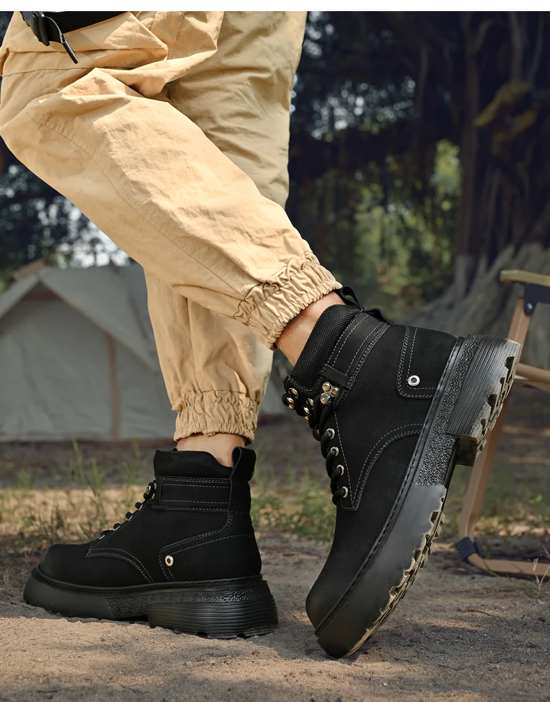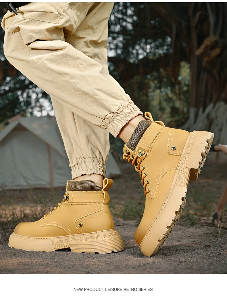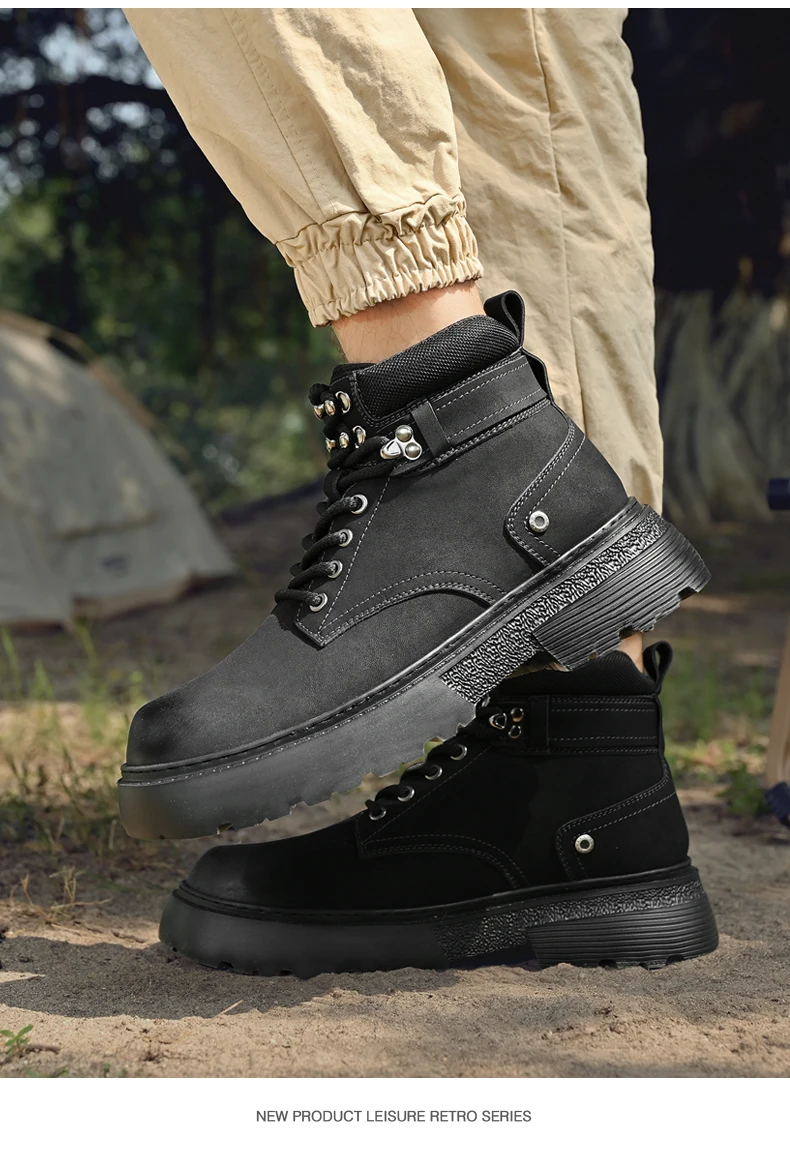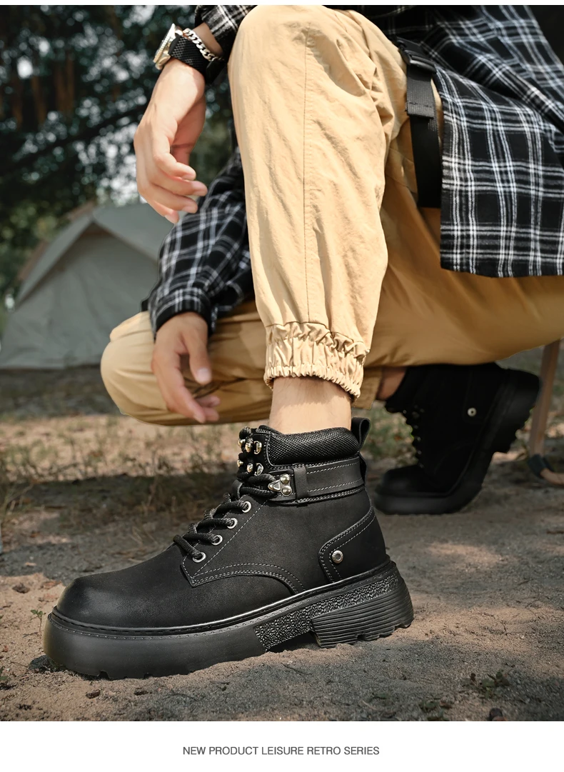 Accept OEM Service Custom LOGO Pure Genuine Leather Hand Made Waterproof High Top Martin Boots For Men