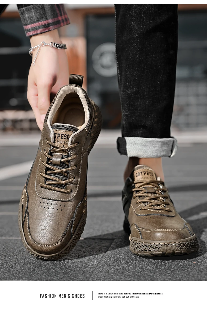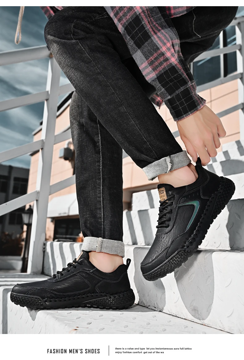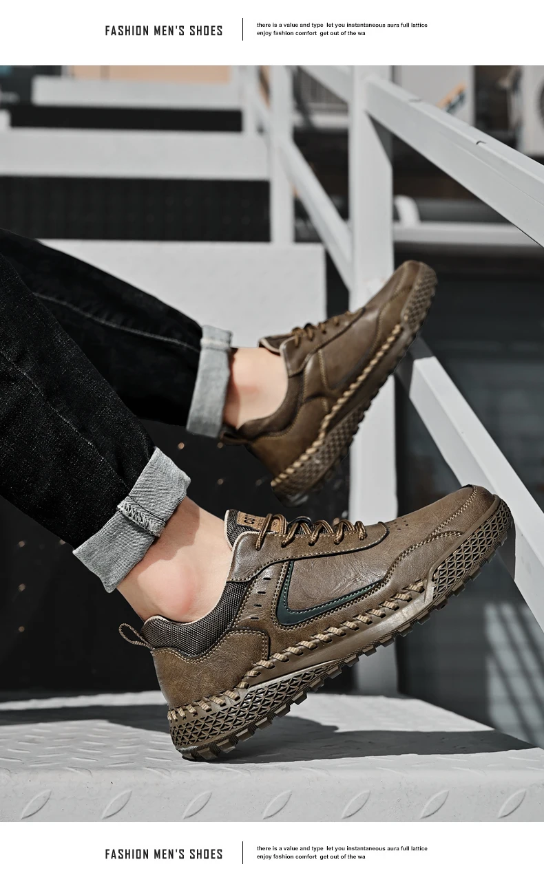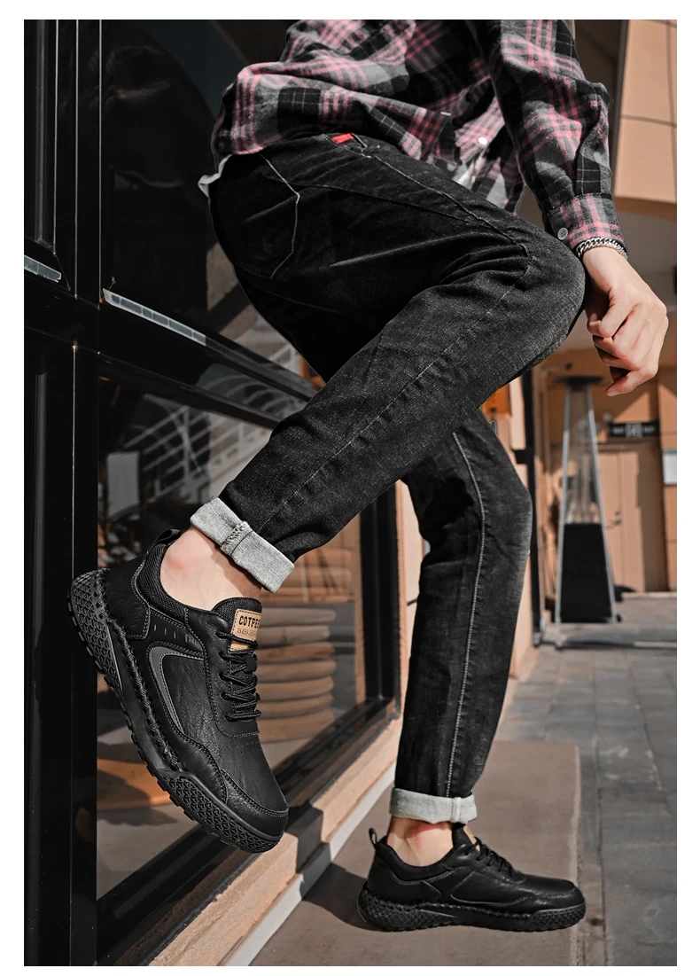 Accept OEM Service In Ready Stock Hand-made Cow Pure Genuine Leather Men Sneakers