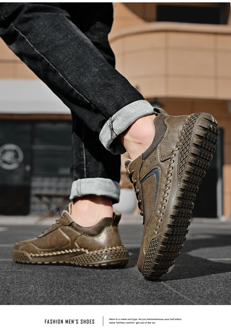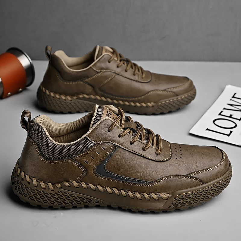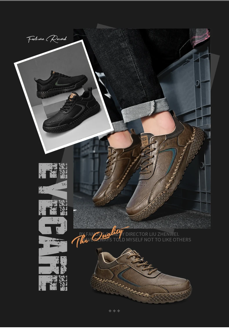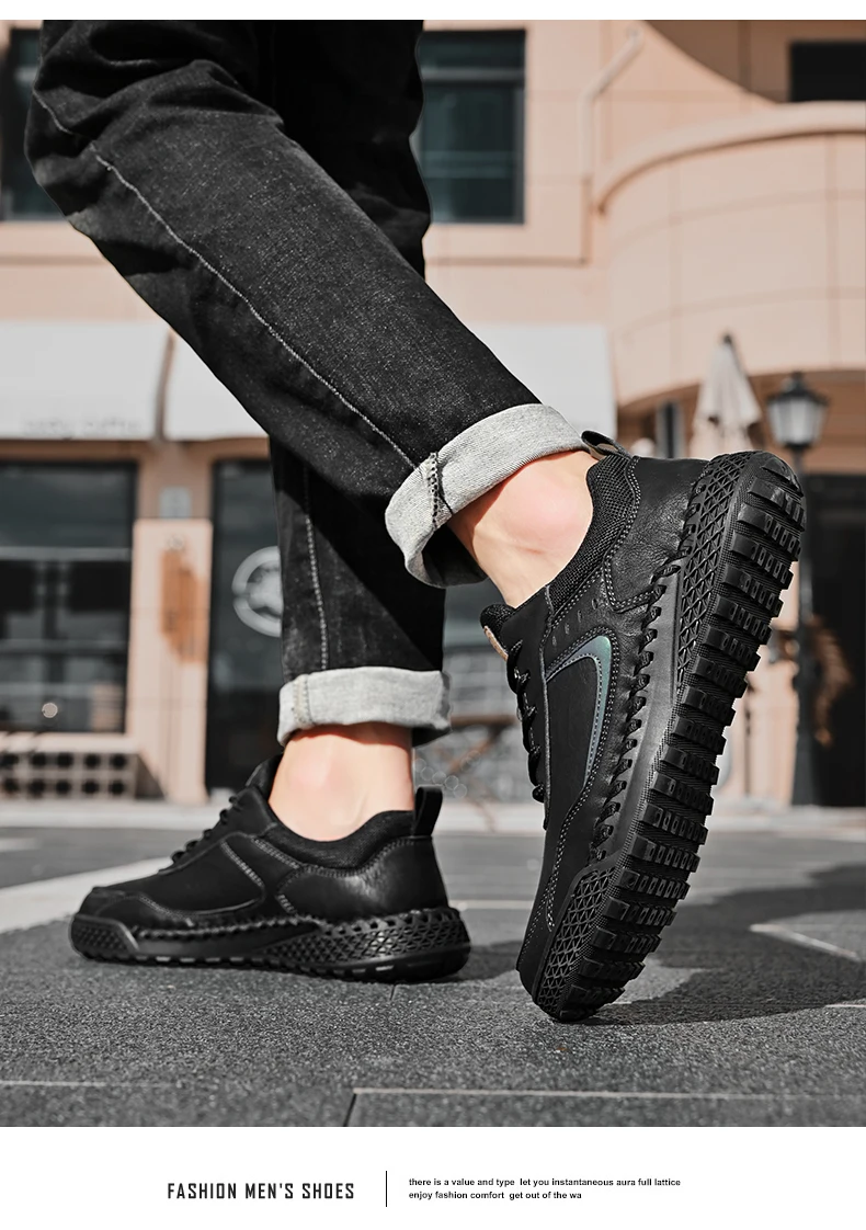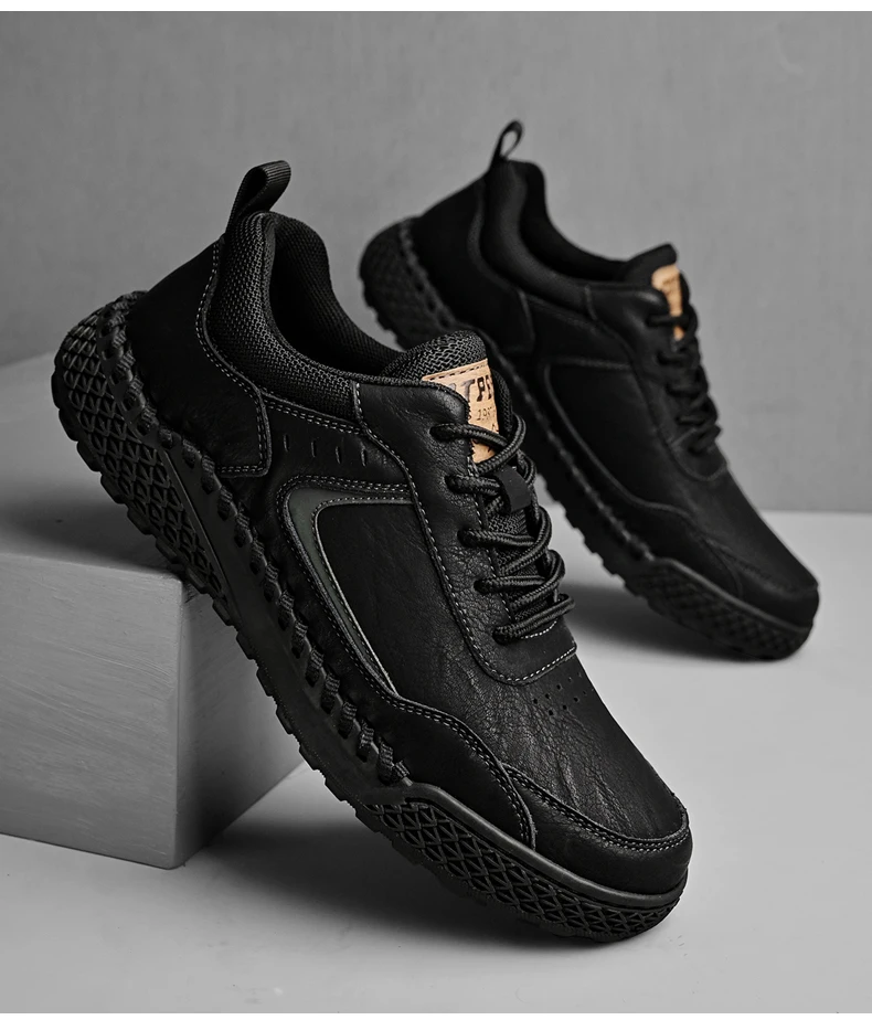 Accept OEM Service In Ready Stock Hand-made Cow Pure Genuine Leather Men Sneakers