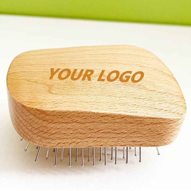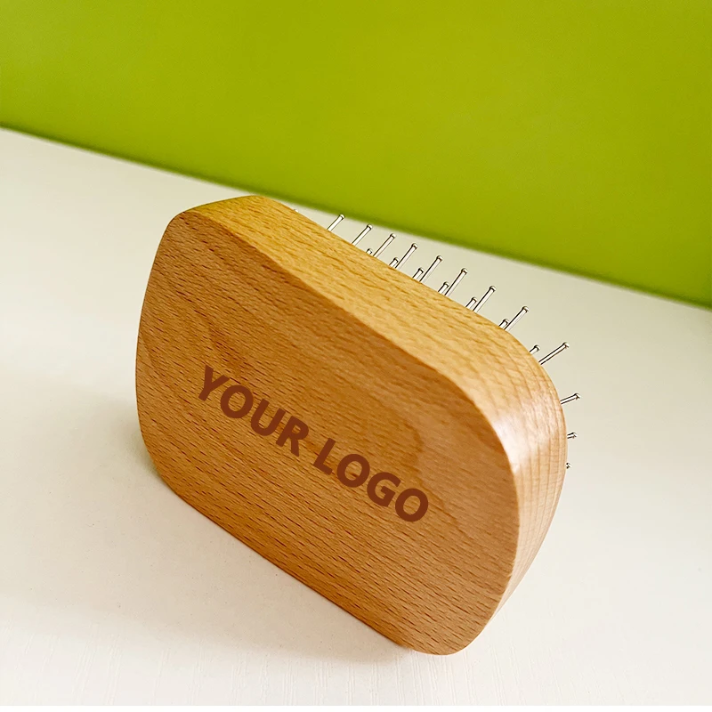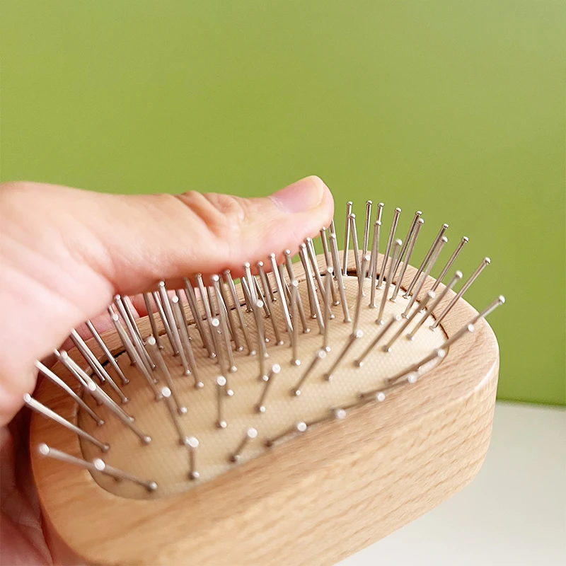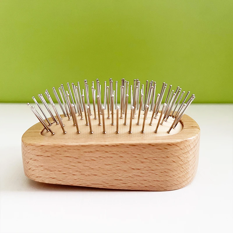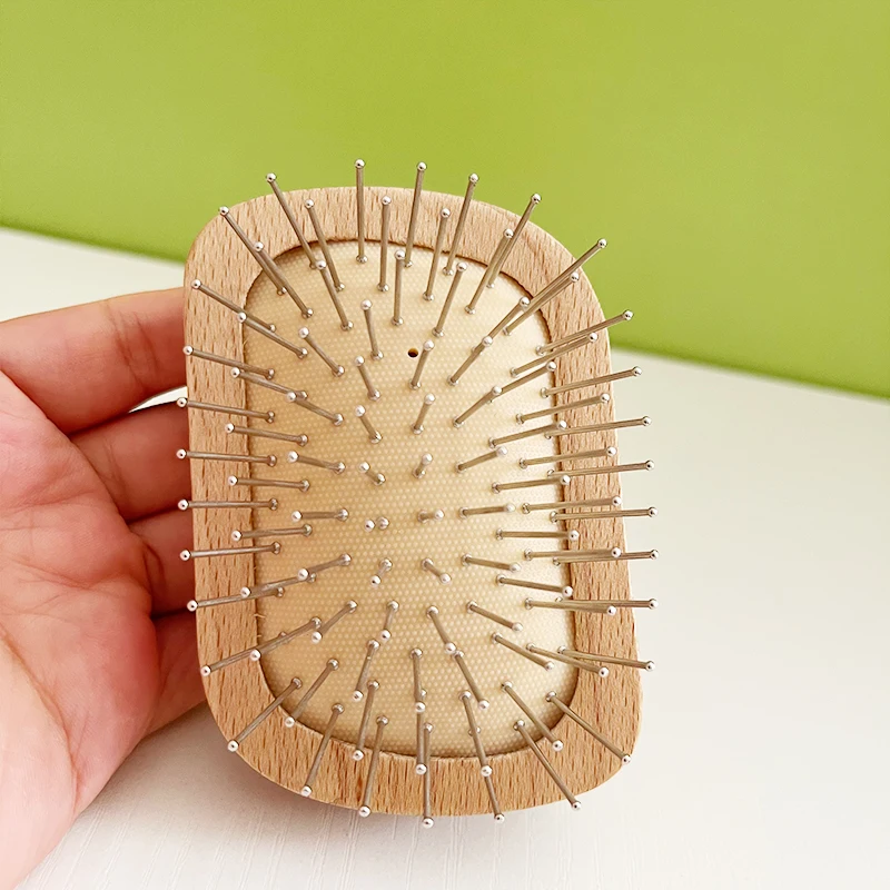 Handmade Natural Wooden Hair Brush Hairbrush with Bamboo Pins Massage Scalp & Detangling All Hair Types