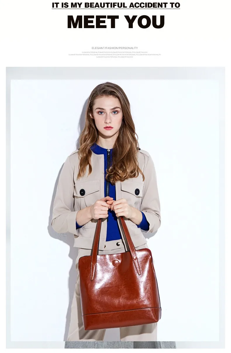 China Factory genuine leather ladies shoulder bag women fashion tote bags shopping handbag women bucket