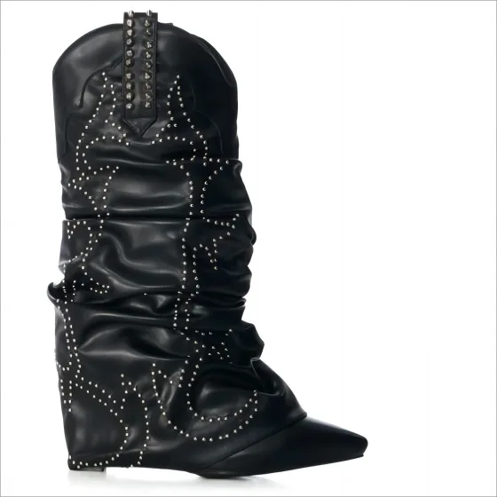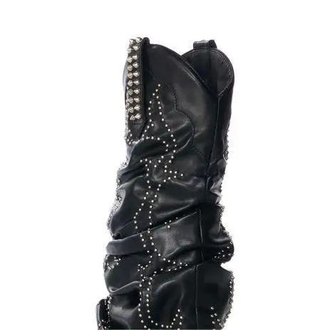 Support OEM/DOM Fashion Cowgirl Women Knee High Boots Leather Thick Heel Women Western Boot