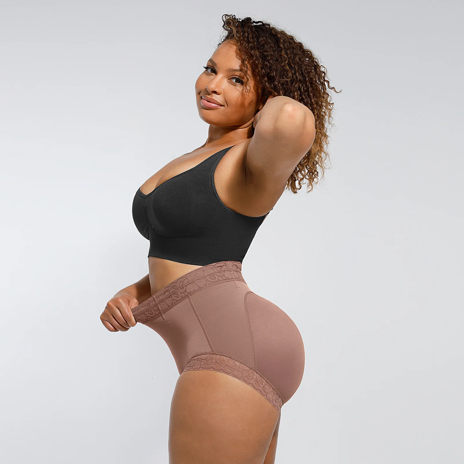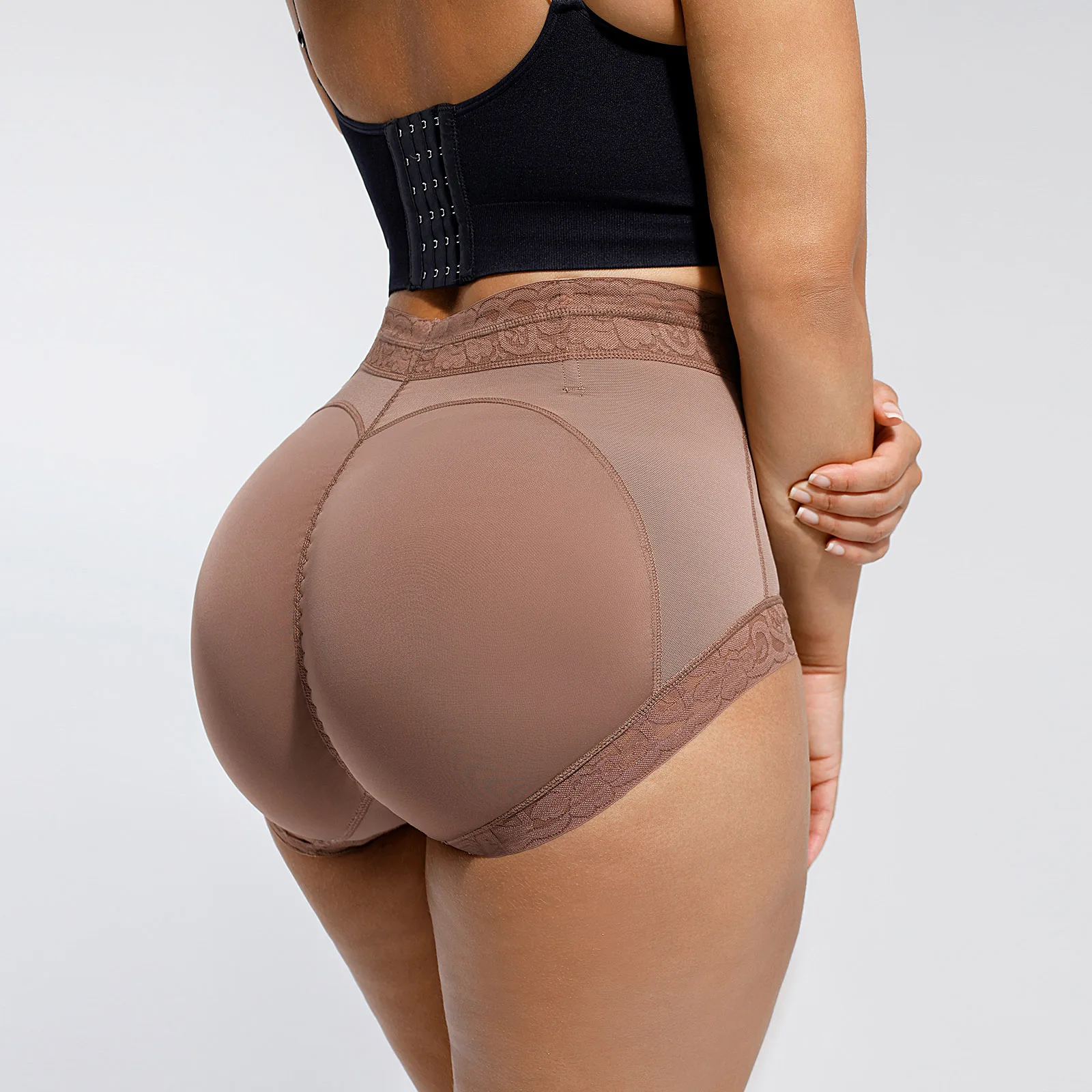 2. Mid-waist design, effectively shrinks the lower abdomen; 3. The buttocks have a peach butt line, with slight wrinkles in the middle of the buttocks, which can create the ultimate peach butt effect when worn; 4. Adhesive lace at the waist and feet, non-slip and rolled; 5. The bottom layer of antibacterial yarn is antibacterial and breathable, making it comfortable all day long. |