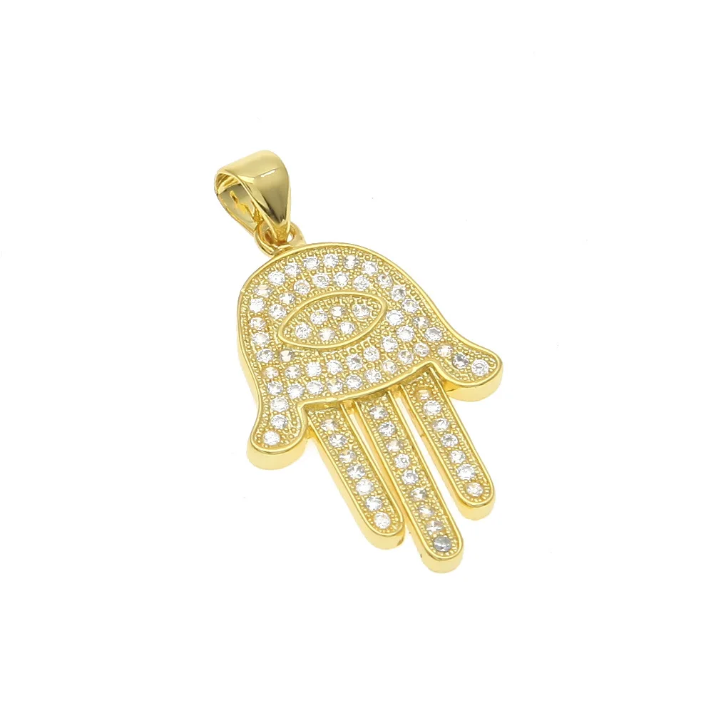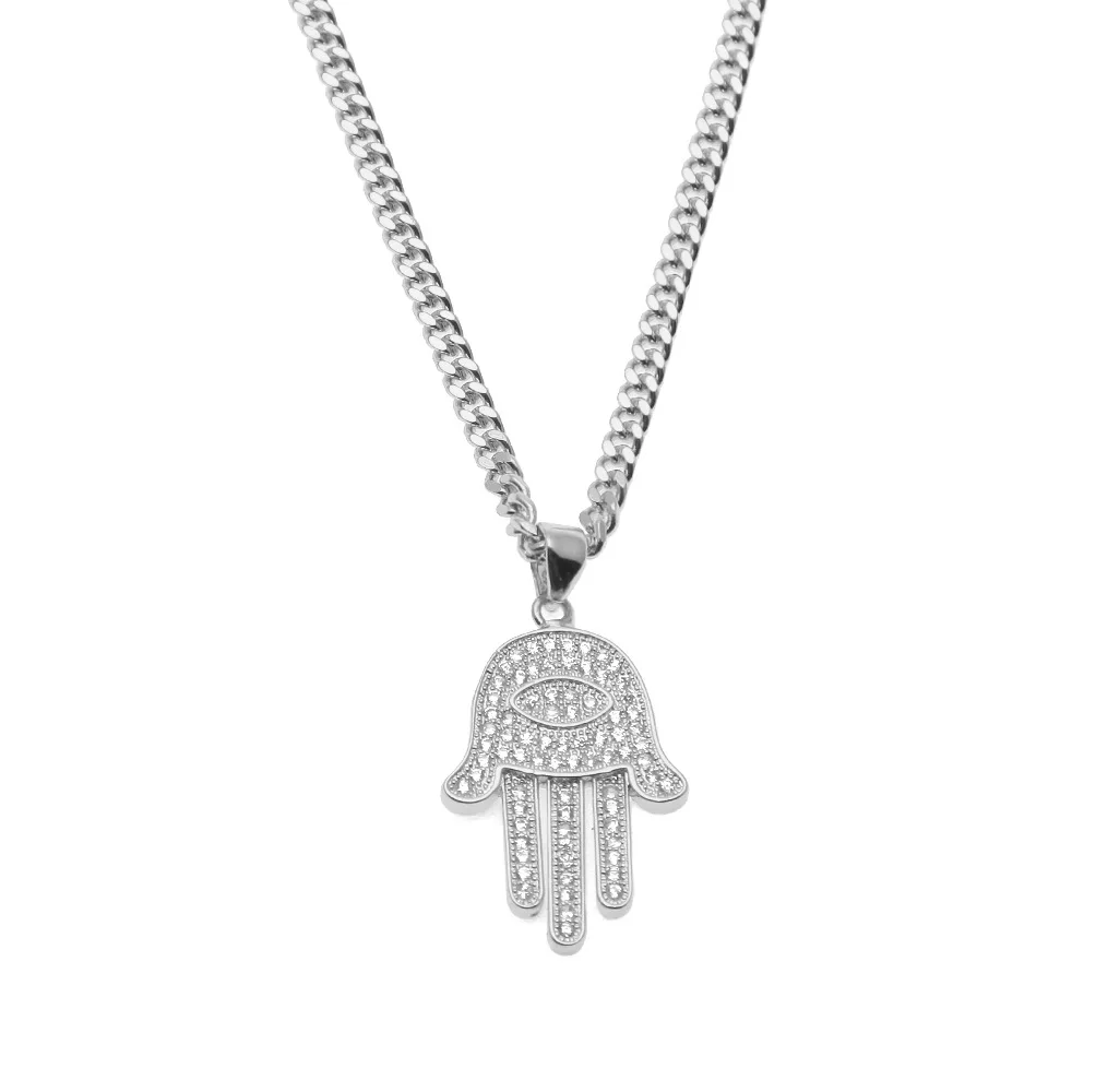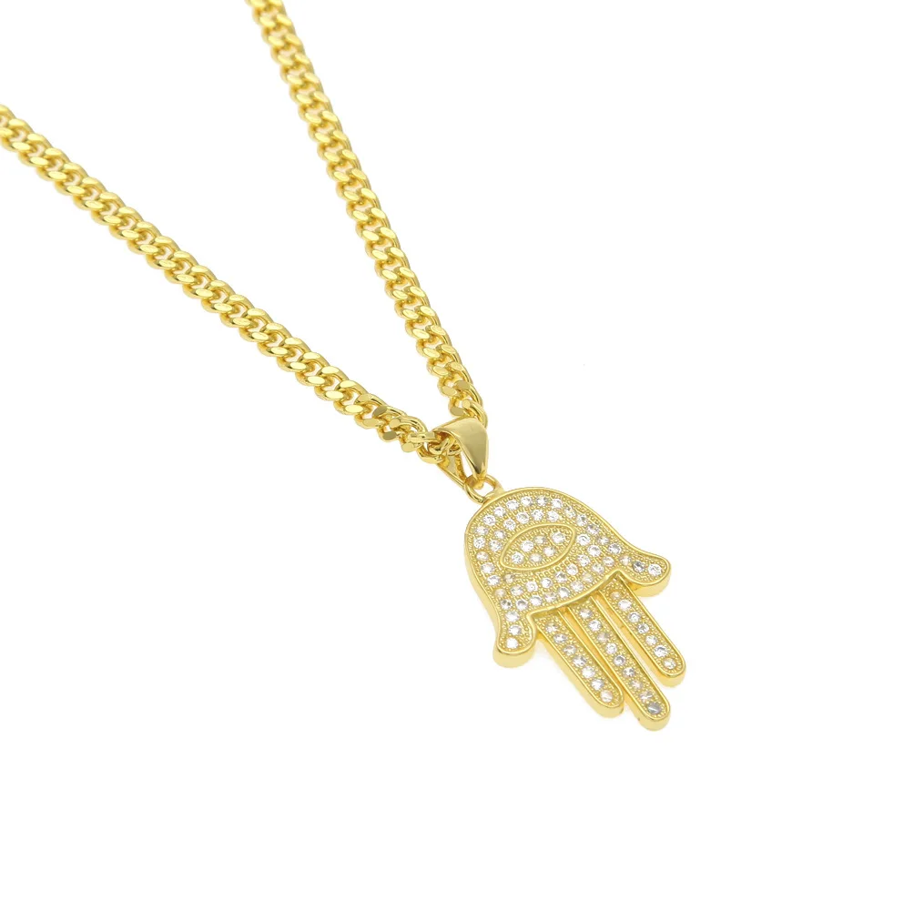 Dropship Hip Hop Amulet Jewelry Gold Plated Lucky Hamasa Hand Shaped Necklace Rhinestone Crystal Evil Eyes Fatima Necklace