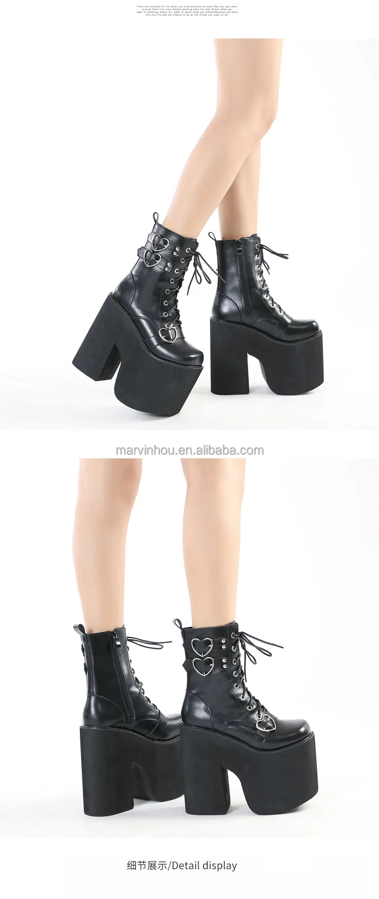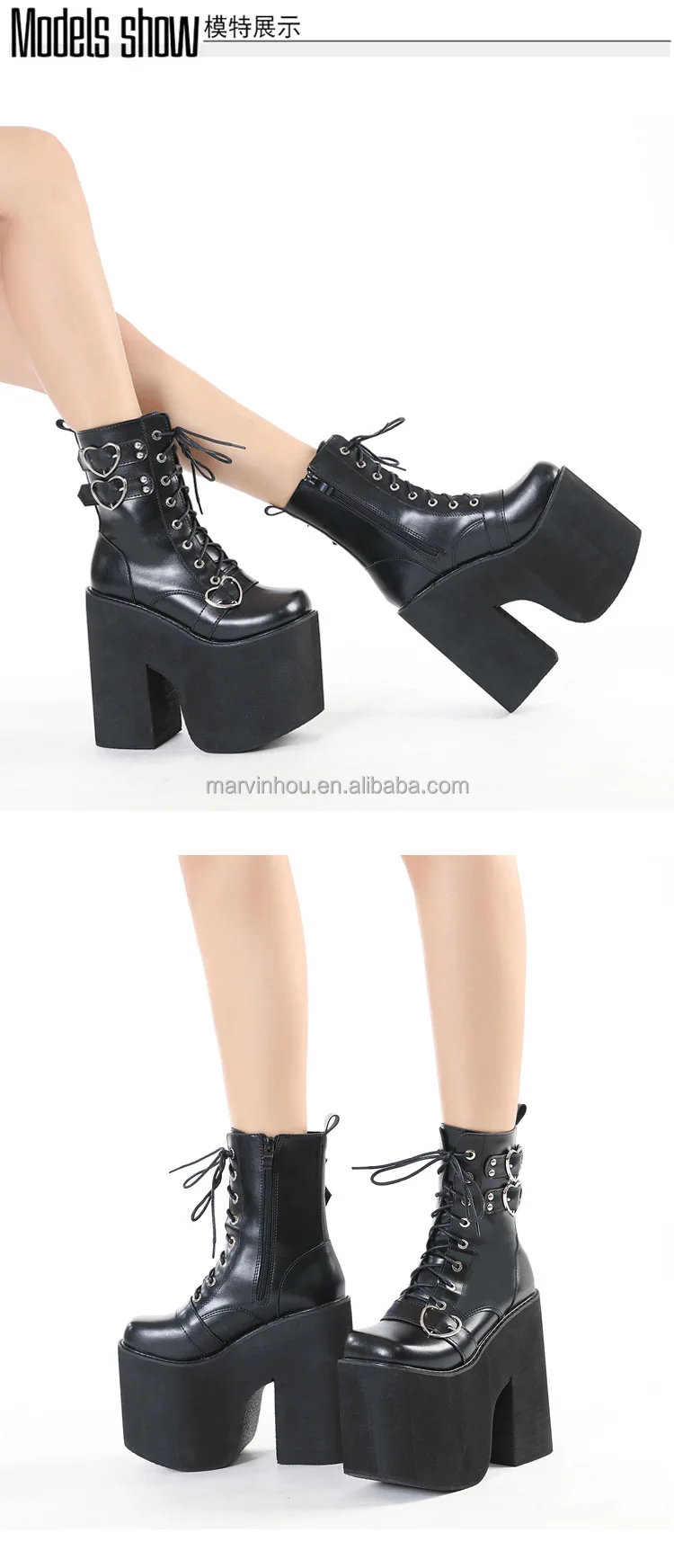 Dropshipping Custom Logo Punk Gothy Style Super High Heels Boots Women Shoes Fashion Designer Ankle Chunky Platform Boots