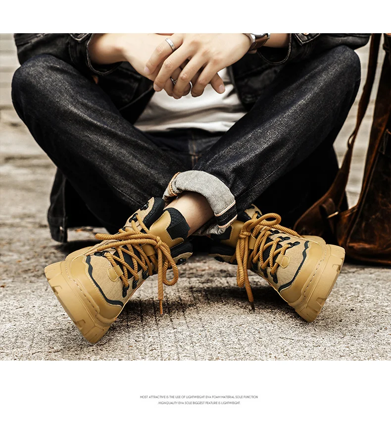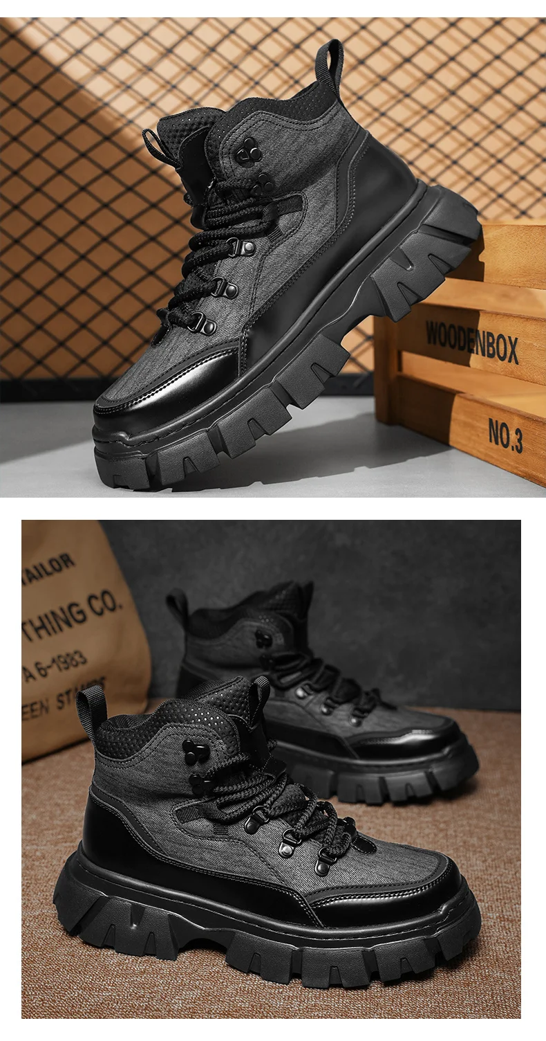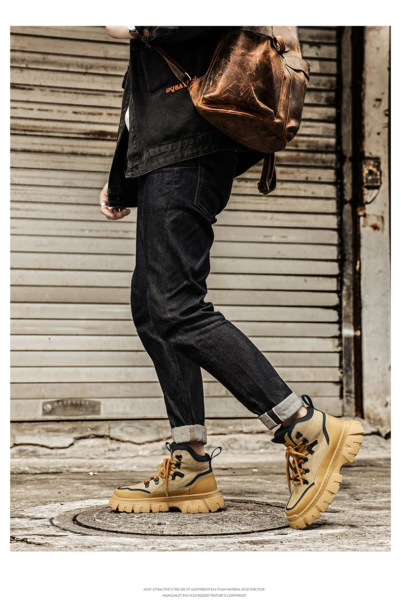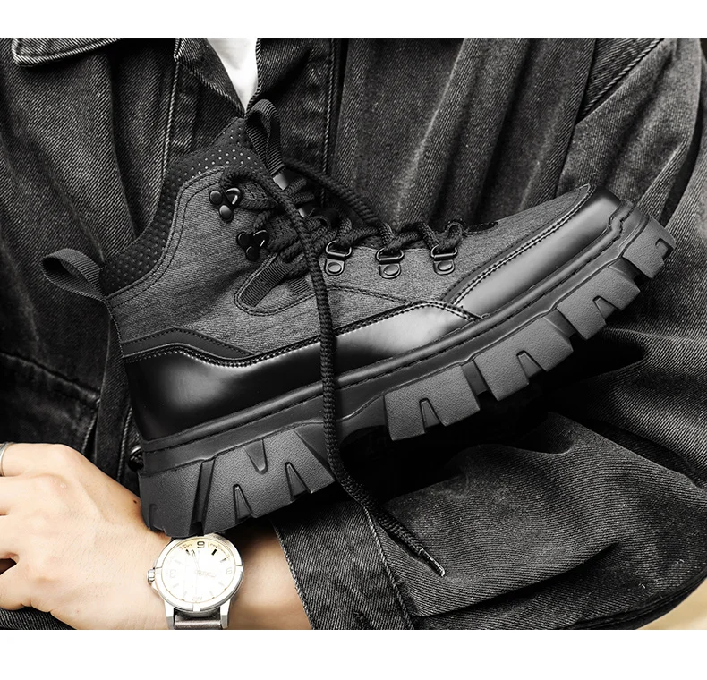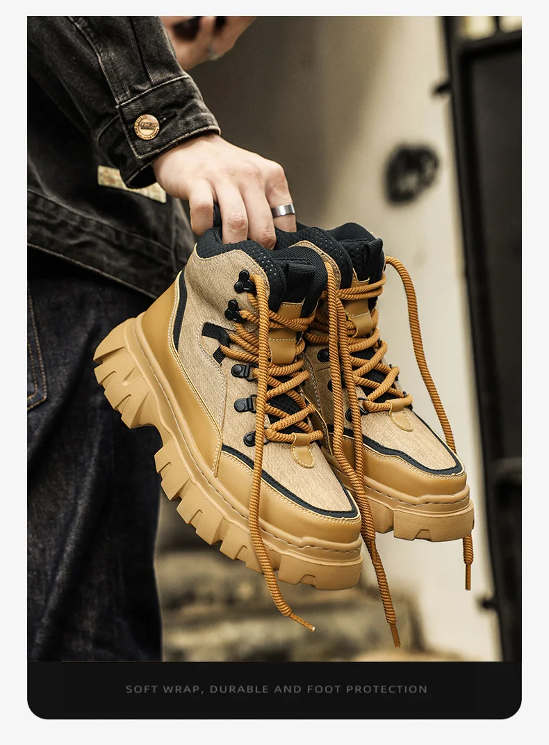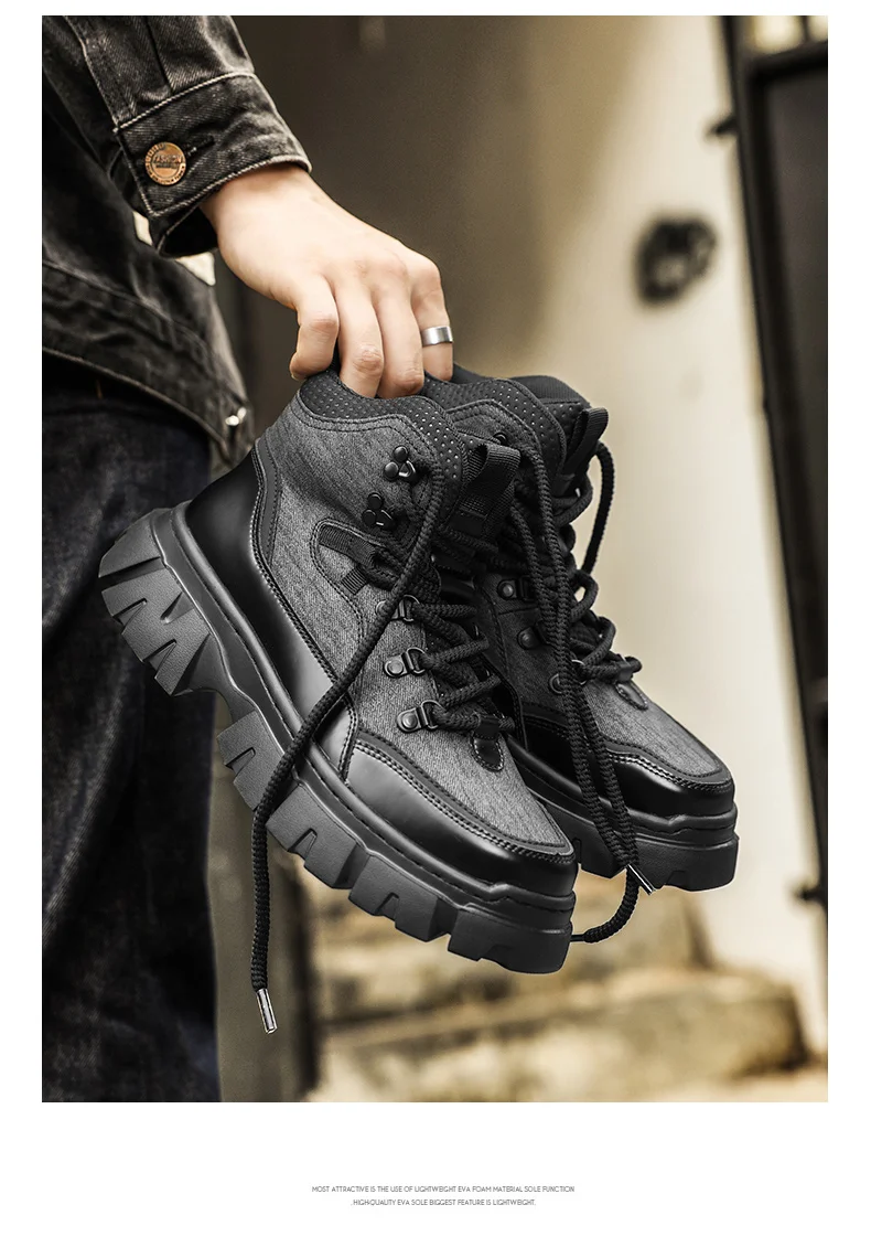 Factory Supply Accept OEM Service Genuine Leather High Increase Sole PVC light Sole Martin Boots For Men