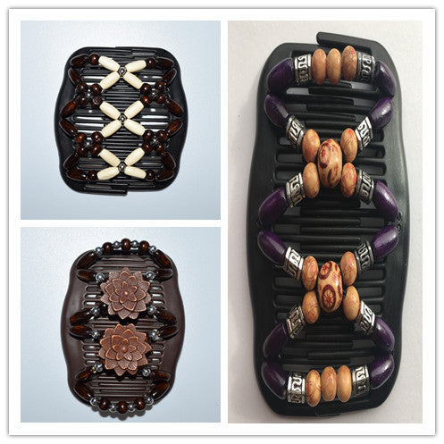 Fashion Magic Beads Elasticity Double Hair Comb Clip Stretchy Women Accessories