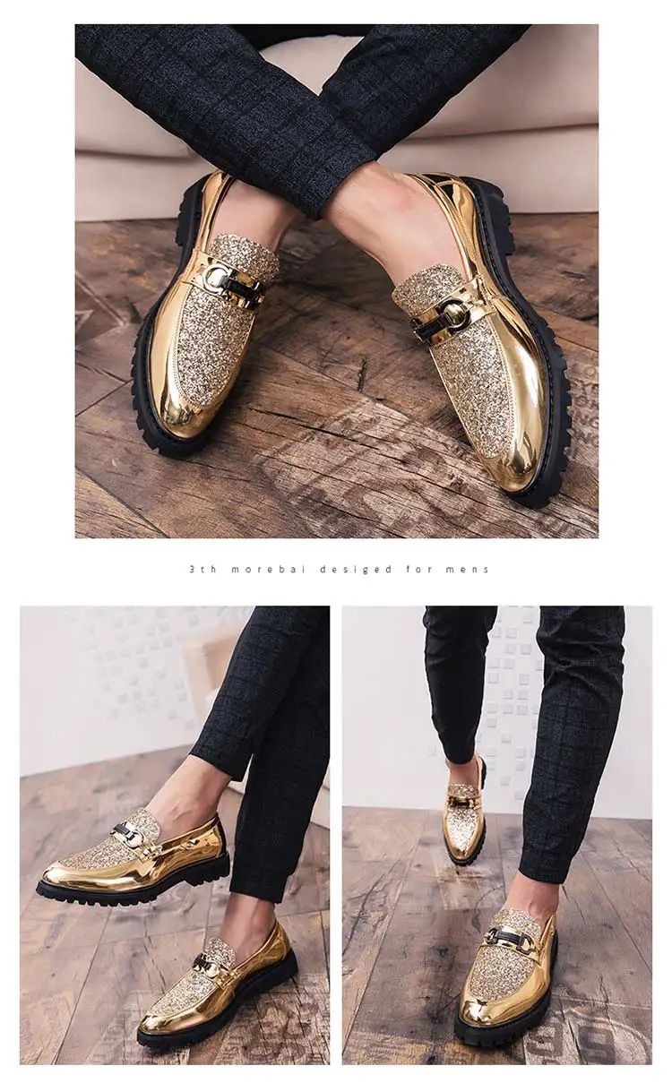 Golden Glitters Wedding Groom Shoes High Performance Fashion Durable Dress Shoes for Men