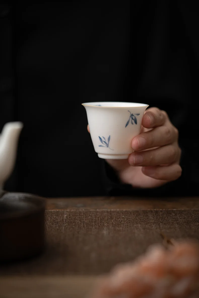 Hand Painted Lanxin Teaup Sweet White Porcelain Single Cup Kung Fu Tea Set Household Drinking Cup Single Cup Ceramic Tea Bowl