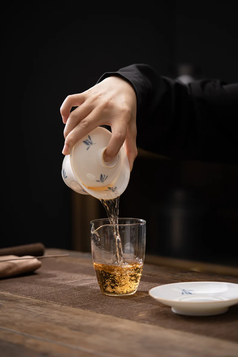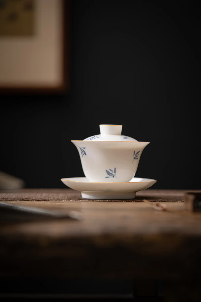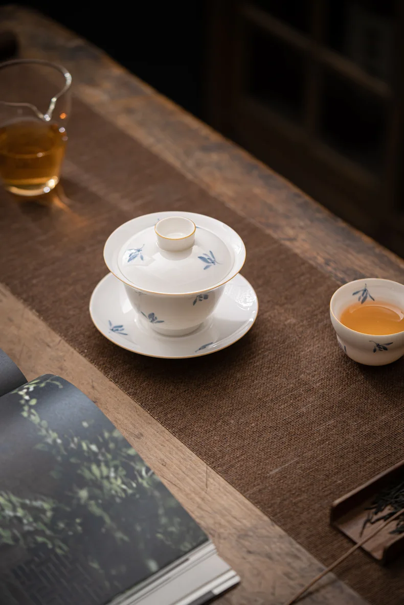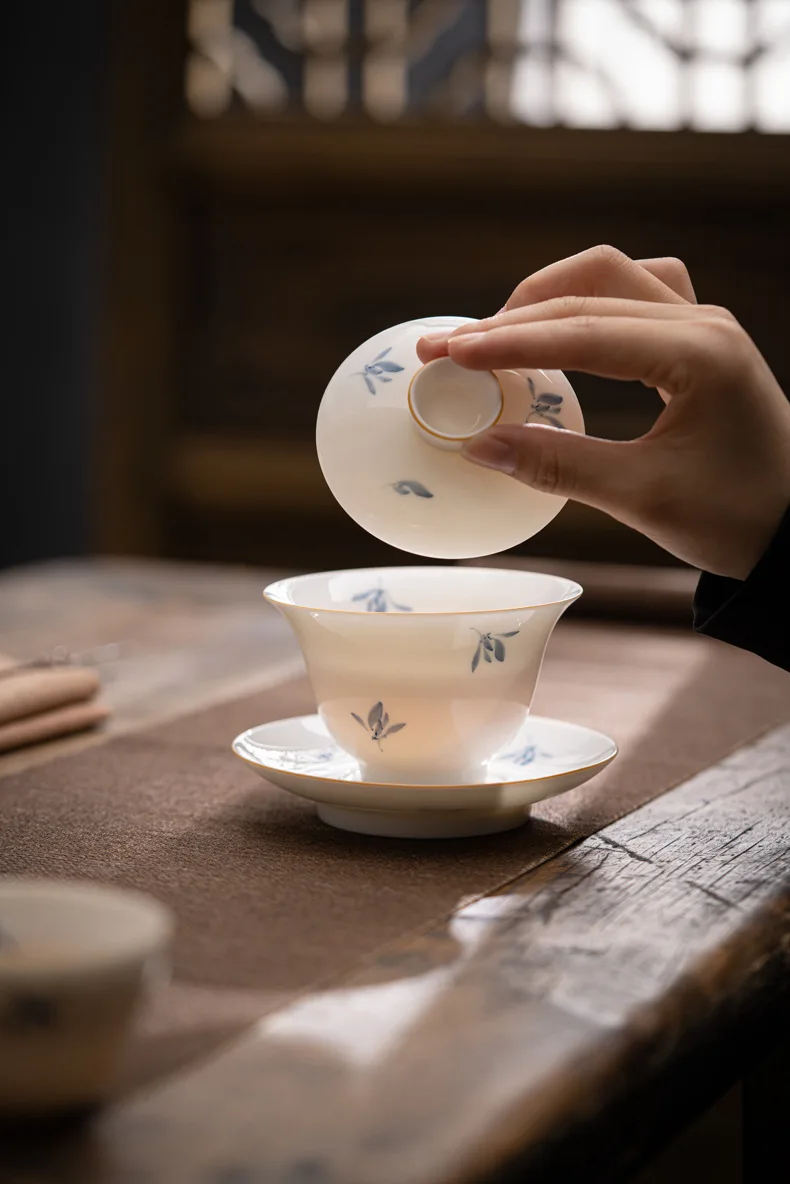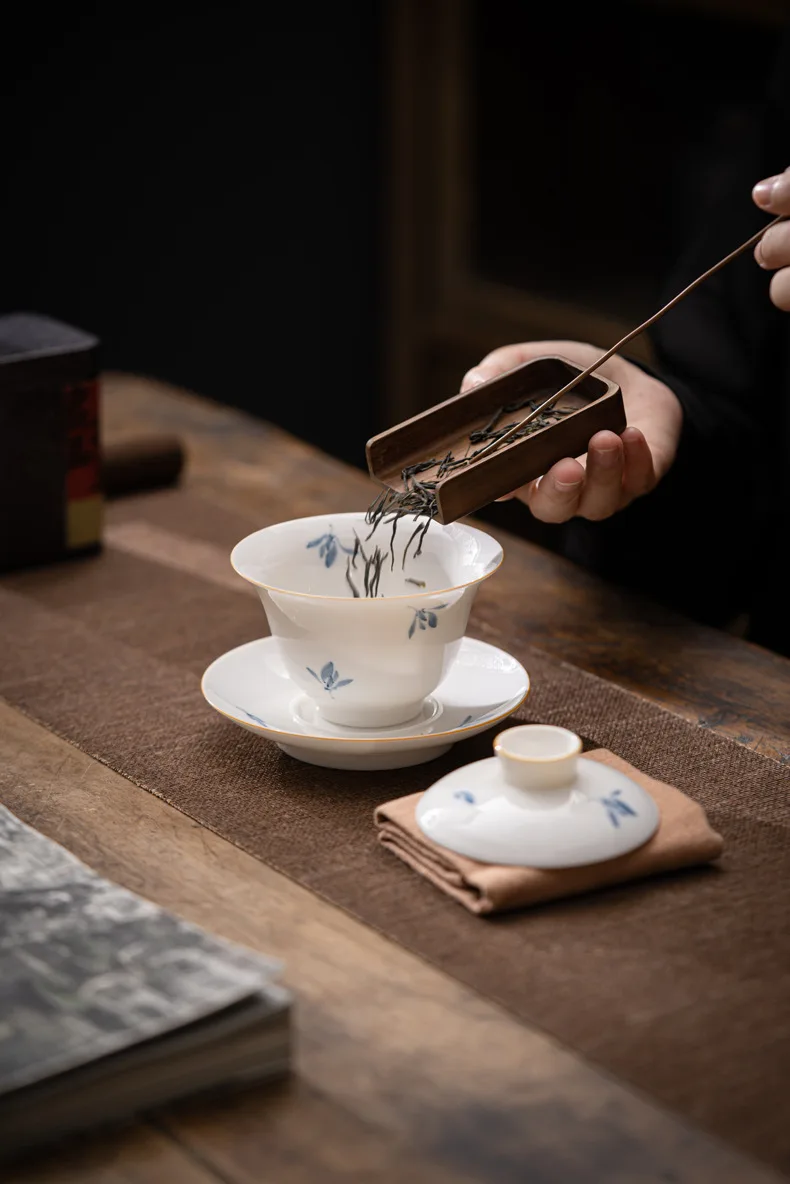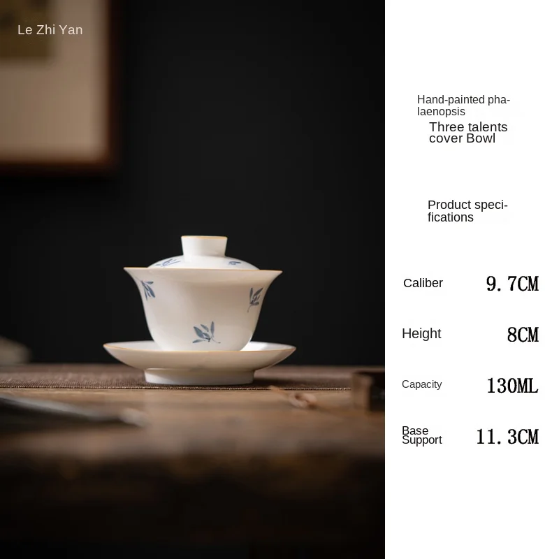 Hand Painted Phalaenopsis Ceramic Gaiwan Teacup Tea Making Device Kung Fu Tea Set Anti-scald Household Tea Bowl