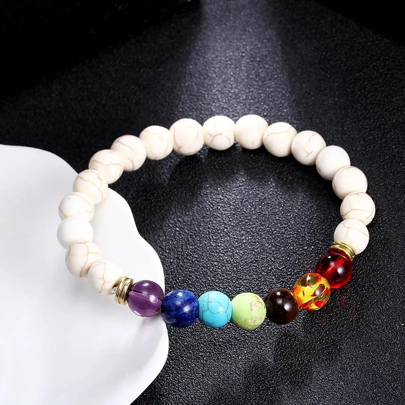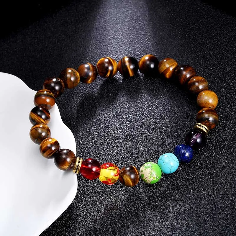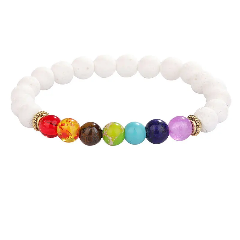 Handmade Yoga inspirational bracelet, Natural Lava Stone essential oil diffuser 7 Chakra Bead Bracelet