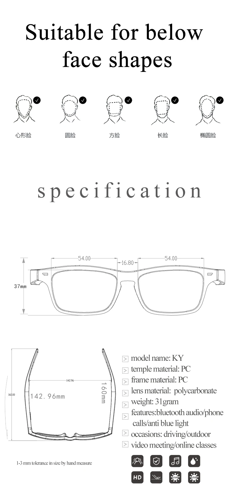 BT calls,BT music, blue light blocking lens ,polarized sunlens,rx lens optional, support AAC code music、