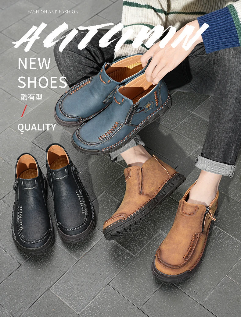 New Arrival Men's Fashion High-top Martin Boots Handmade Leather Boots Loafers