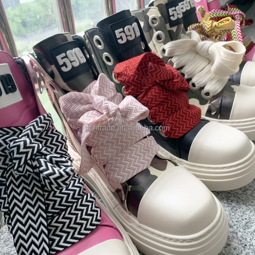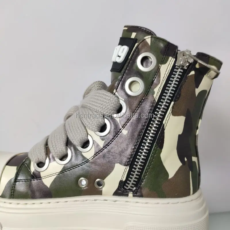 High Top Platform Sneakers Women Black Cargo Sneakers Shoes New Style Camo Pink Distressed Boots Flat Ankle Boots For Women