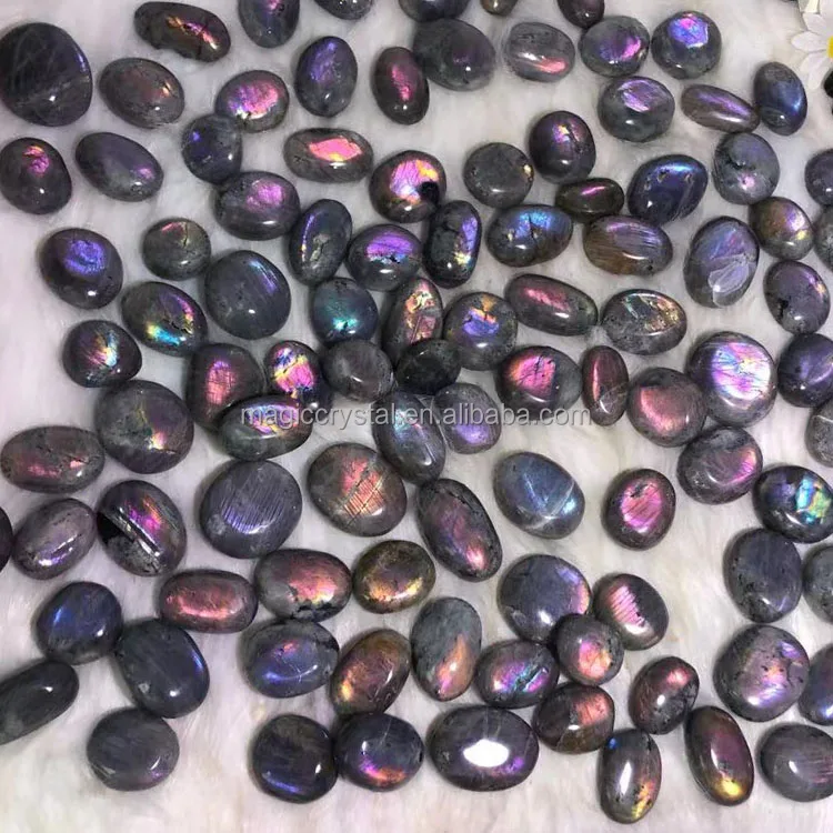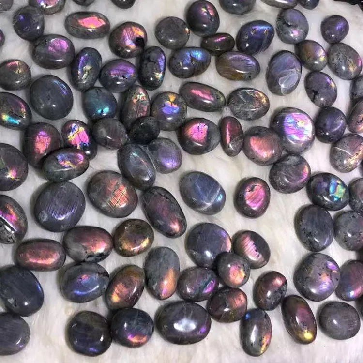 Highly Polished Natural Purple Pink Flash Labradorite Crystal Palm Stones