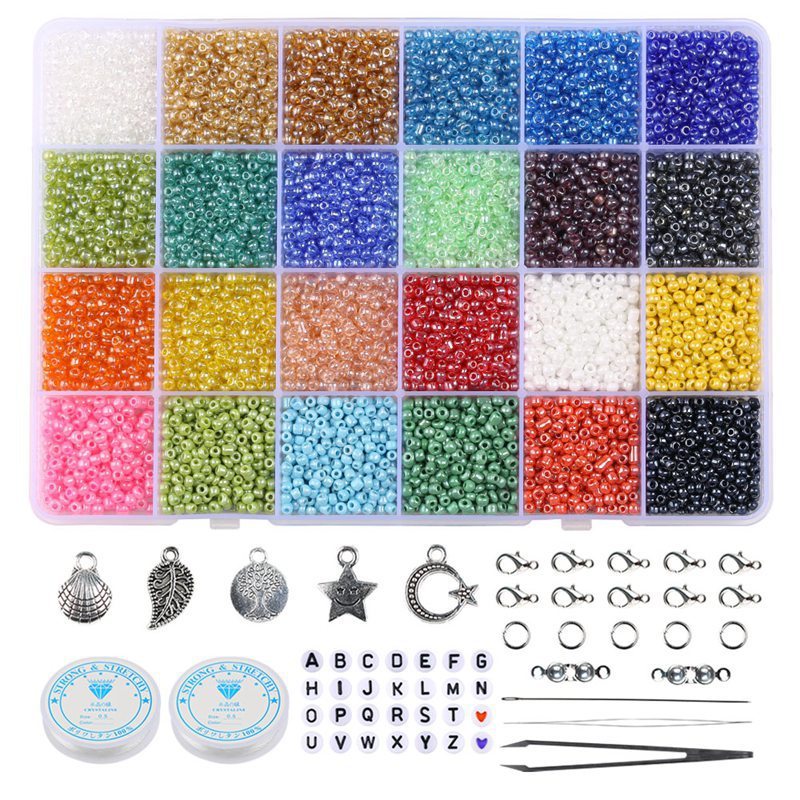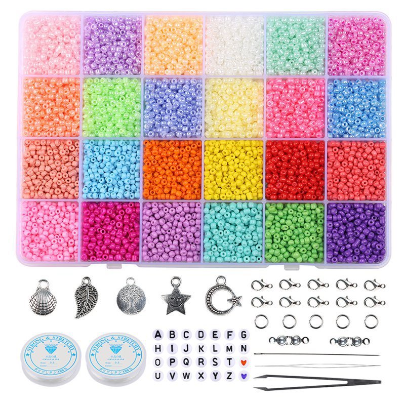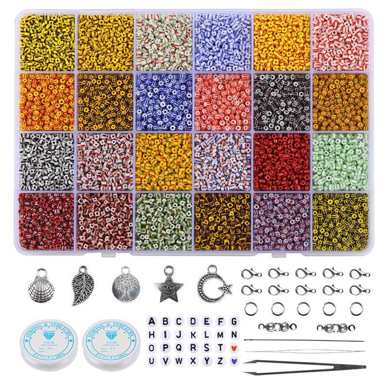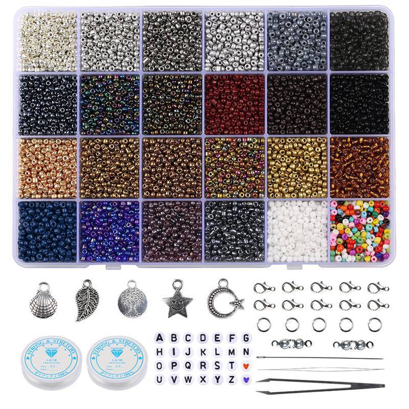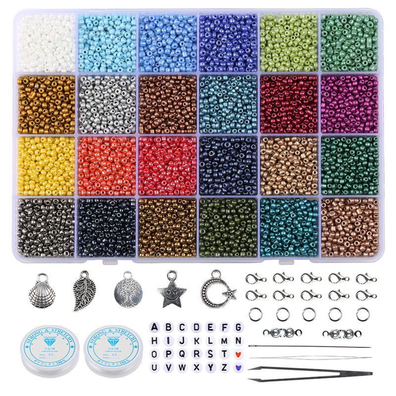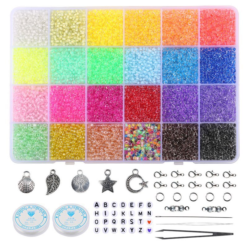 Glass beads--about 2mm, hole 0.7mm, 24 colors, about 10g/color, 240g;