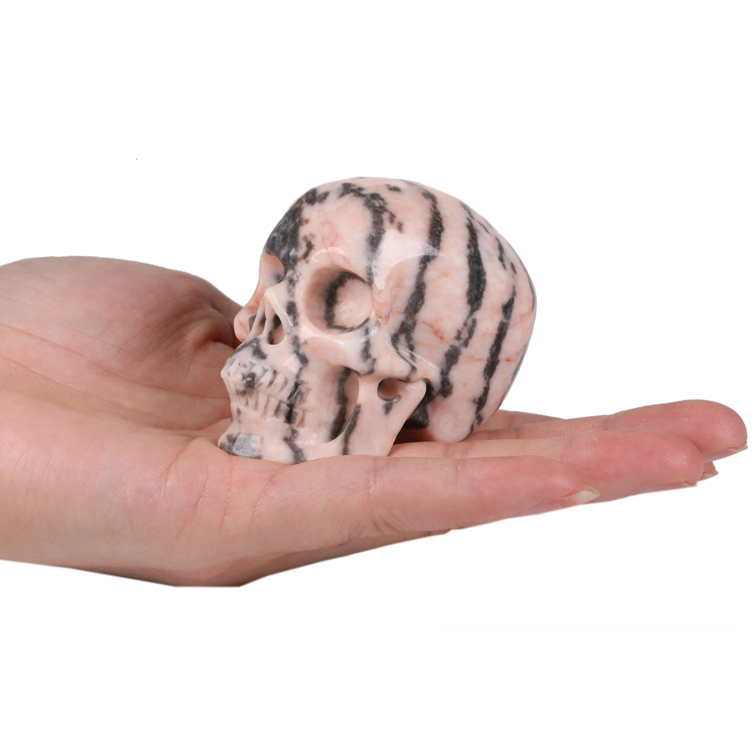 Mr.skull 2.5 inch pink zebra jasper Skulls Crystal Healing stones Crystal Skulls Carved for Crystal Crafts stocking stuffer