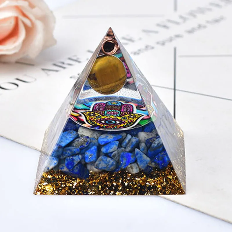 Natural Crystal Gravel Lapis Lazuli Resin Organ Pyramid With Tiger Eye Sphere Resin Tower