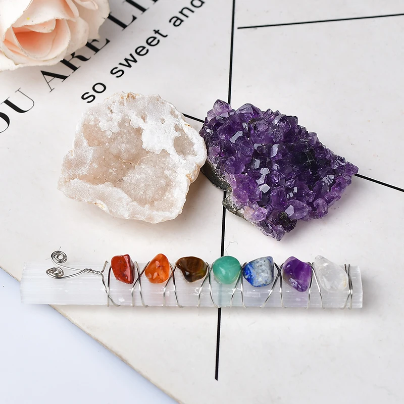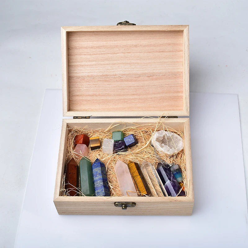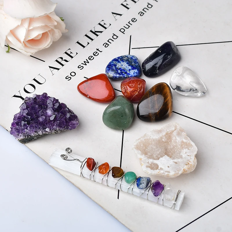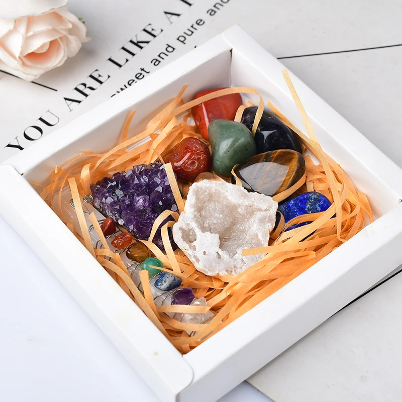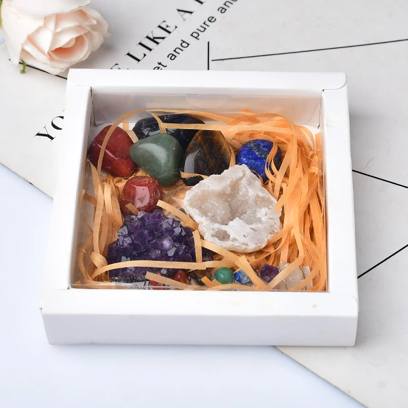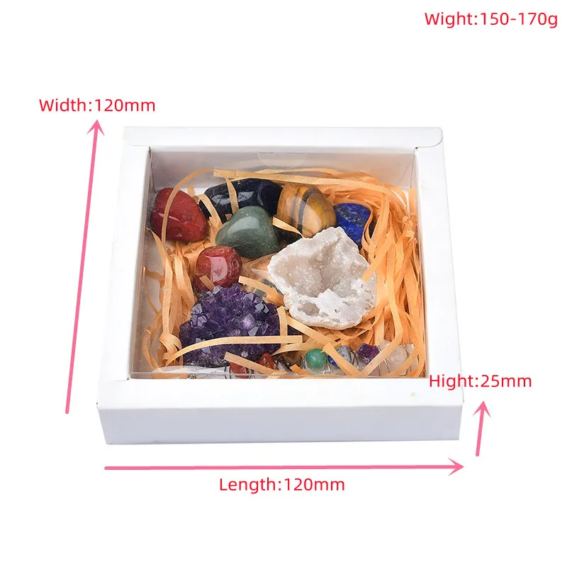 Natural Crystal Seven Chakras Meditation Reiki Raw Stones Healing Stone Set Kit Gifts Box