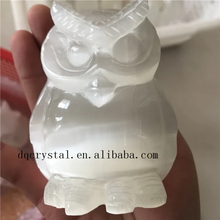 Natural selenite crystal carved white gypsum animal tortoise,owl crystal stone for home decoration |