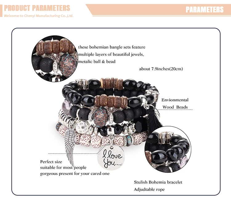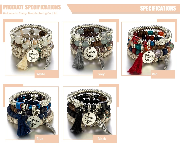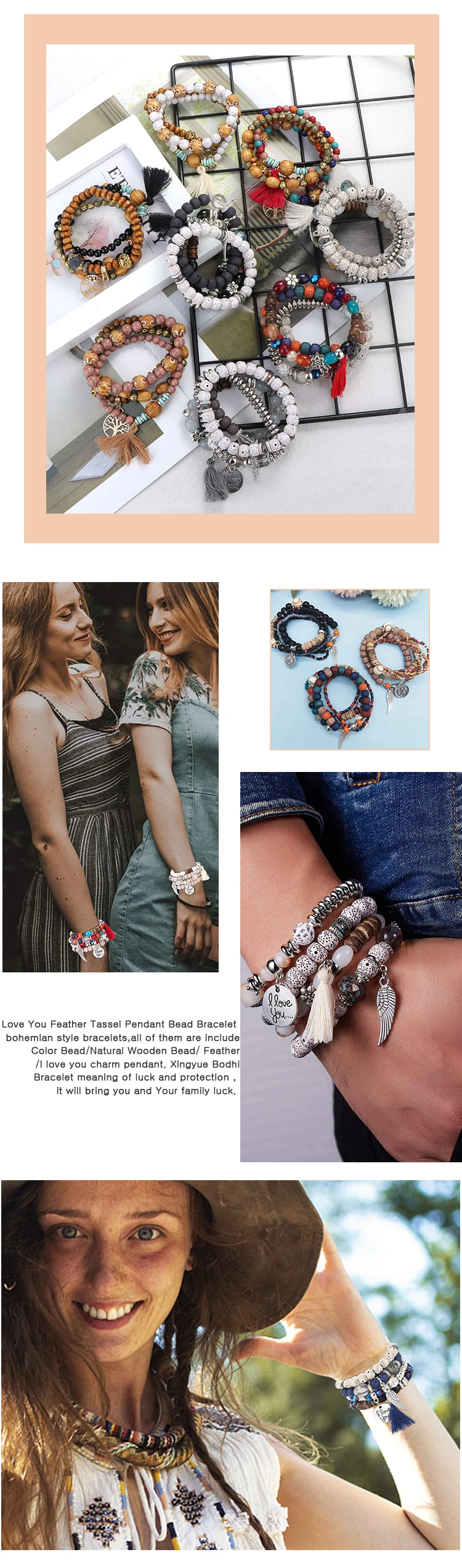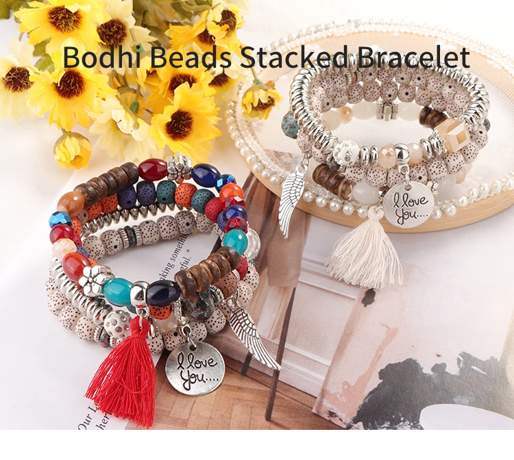 New Bohemian Bodhi Beads Stacked Bracelet Set Jewelry For Women Tassel Multilayer Bracelet Gift Wholesale