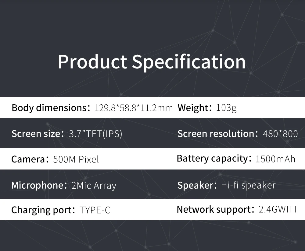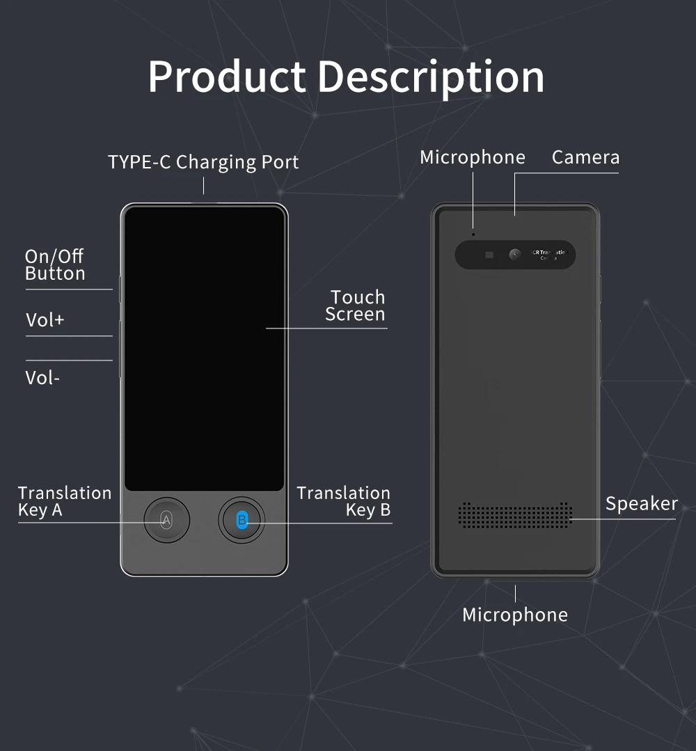 Giftbox x 1, translator x 1, user menual x1, charging cable x 1