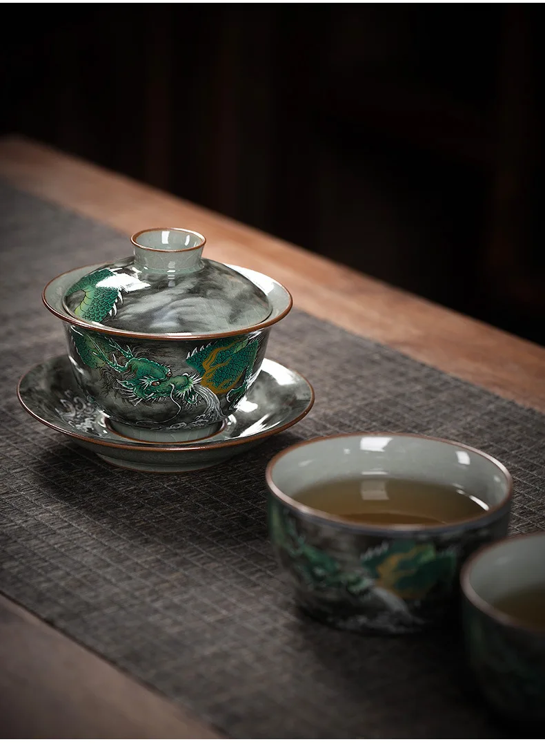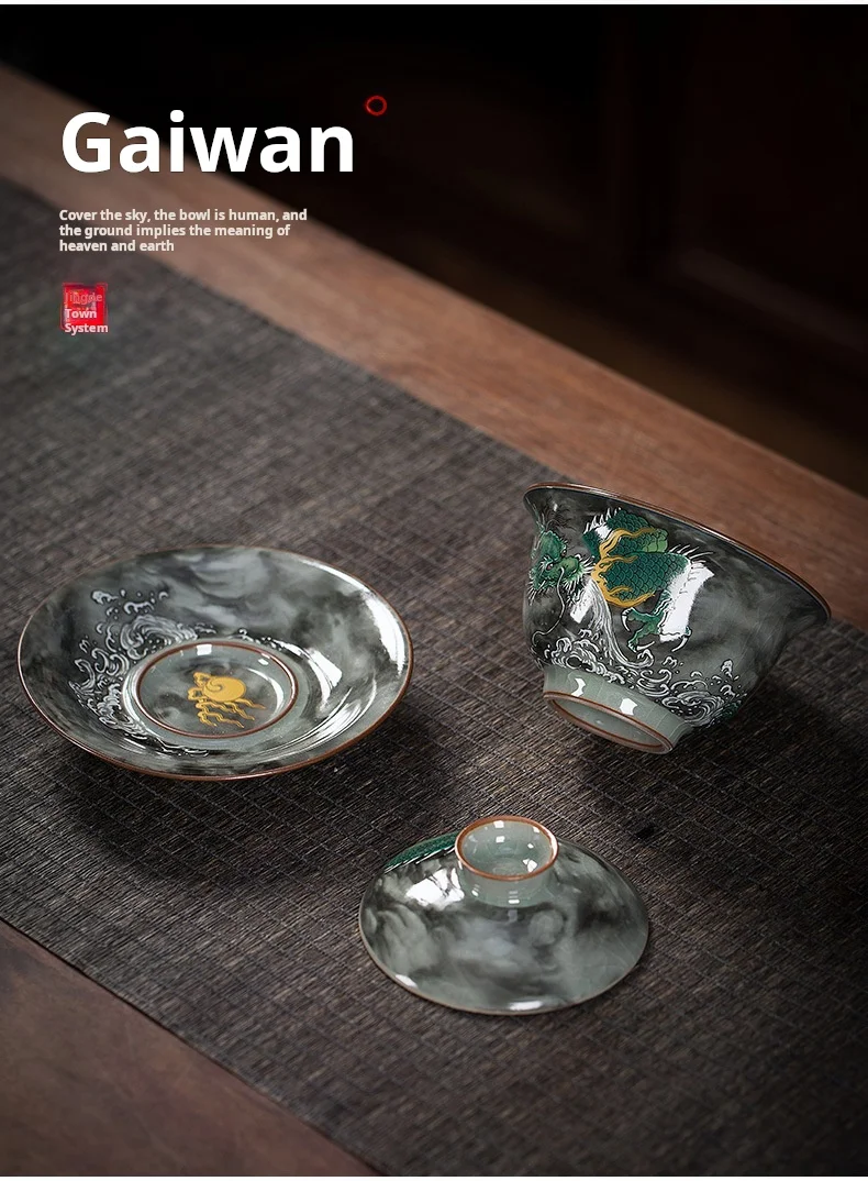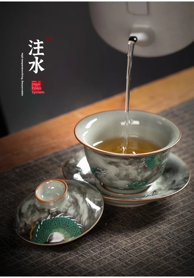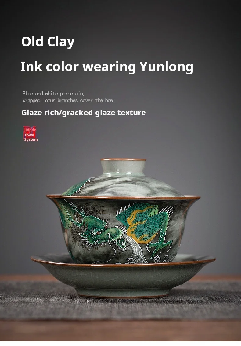 Old Clay Ink Color Wearing Yunlong Tureen Single Kombucha Tea Bowl With Cover Sancai Tea Cup Ceramic Gaiwan Tea-making Sets
