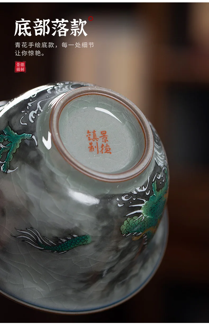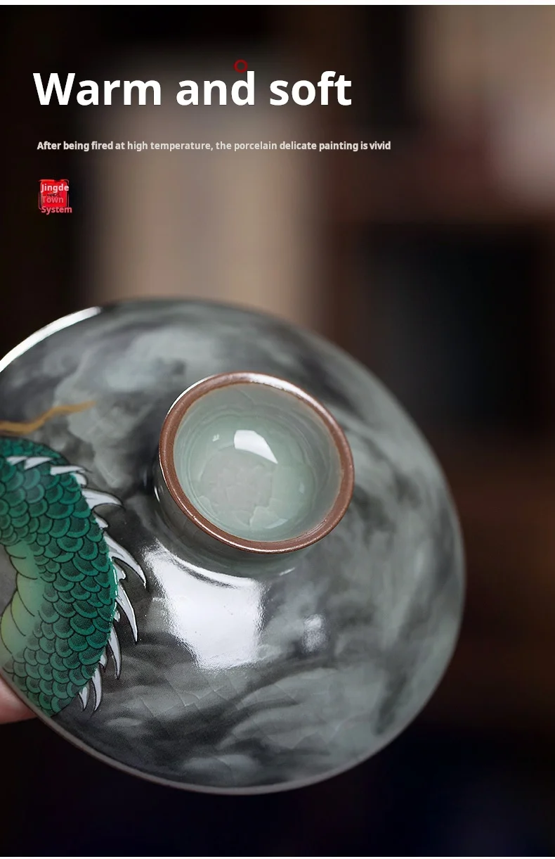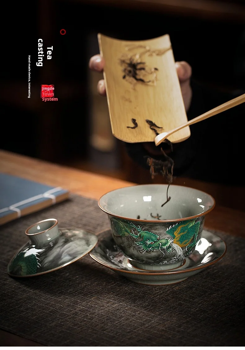 Old Clay Ink Color Wearing Yunlong Tureen Single Kombucha Tea Bowl With Cover Sancai Tea Cup Ceramic Gaiwan Tea-making Sets