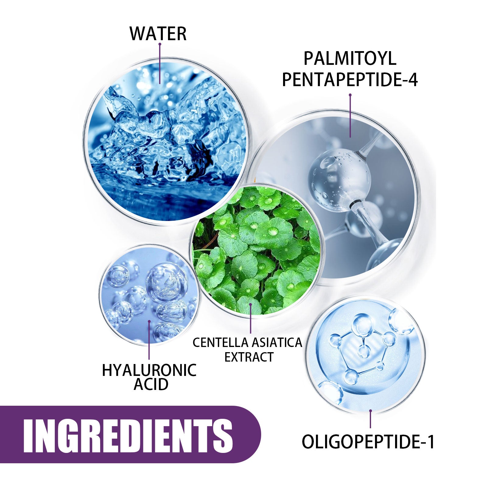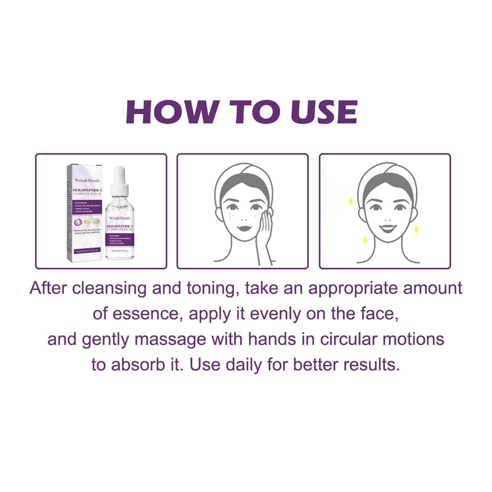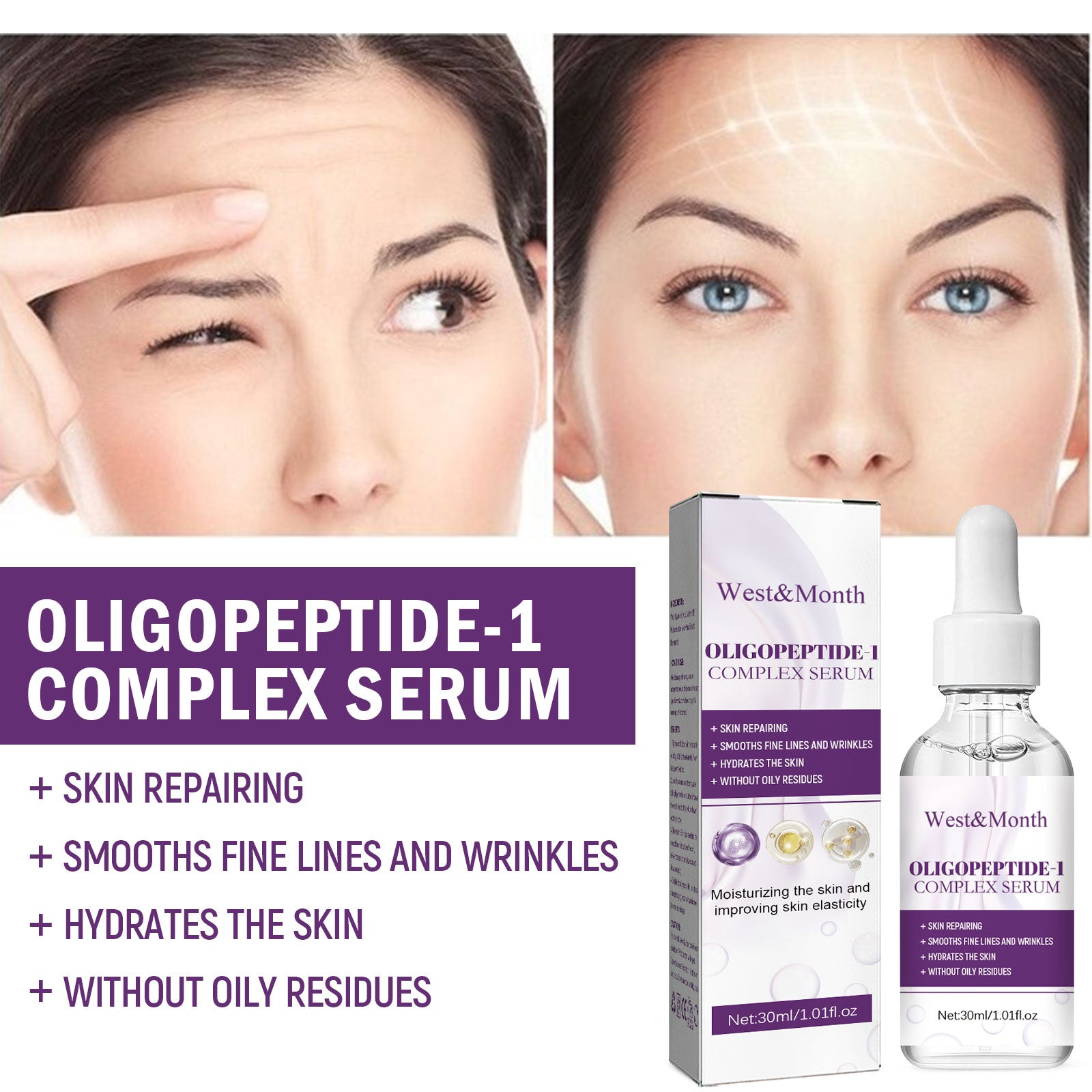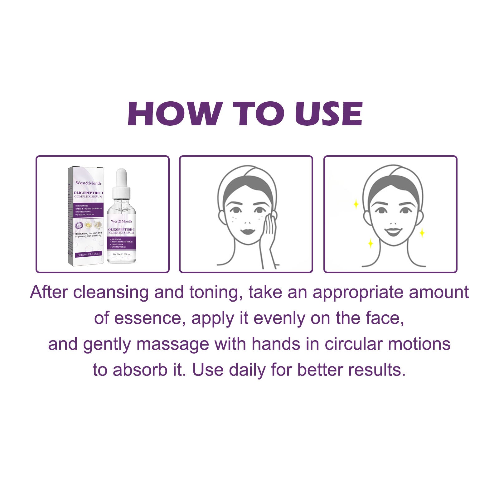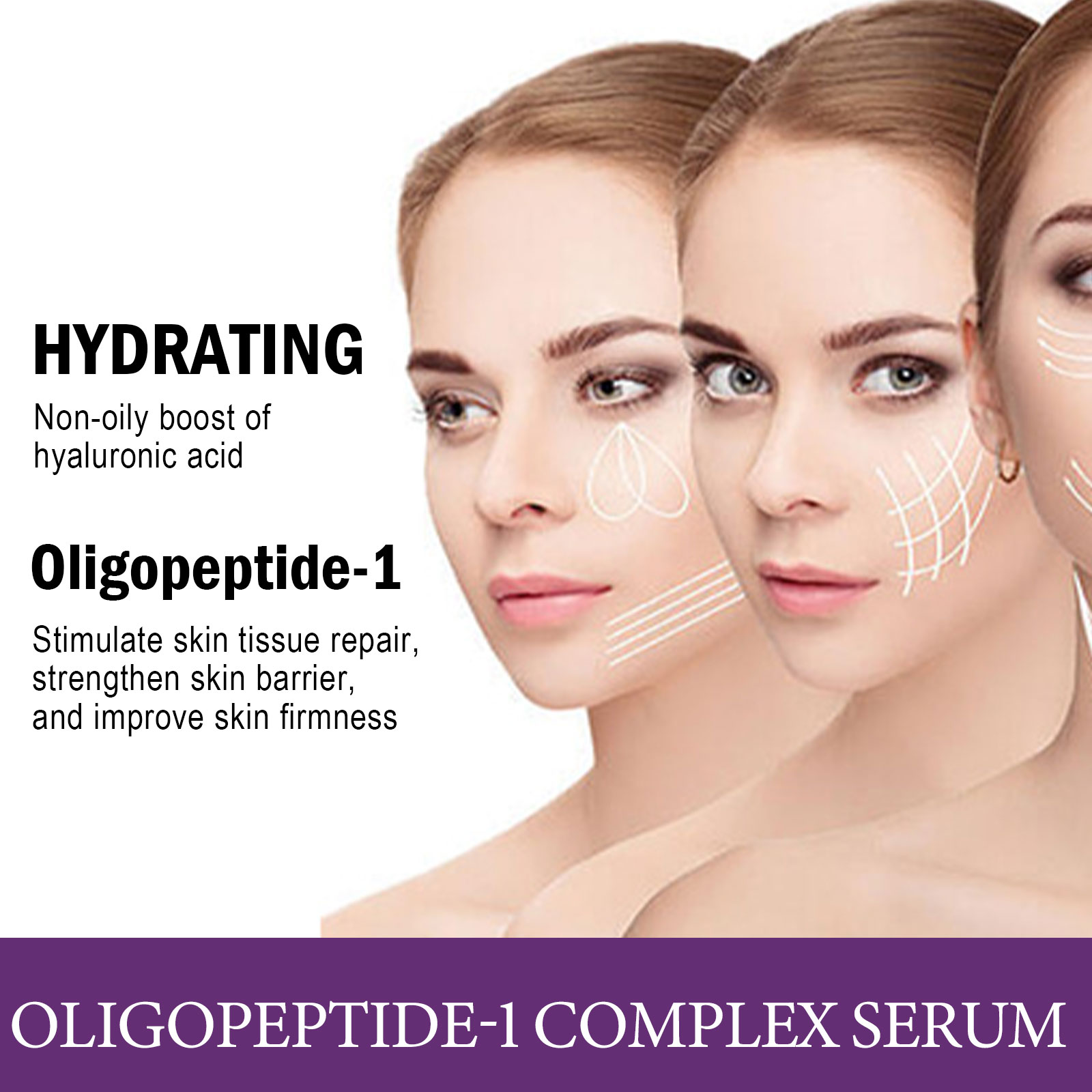 Our Oligopeptide-1 Complex Serum contains palmitoyl pentapeptide-4, oligopeptide-1, and hyaluronic acid. It can stimulate skin tissue repair, strengthen the skin barrier, smooth fine lines and wrinkles, improve skin firmness, and moisturize the skin. Its use method is very simple: after cleansing, dry the face, take an appropriate amount of essence, evenly apply on the facial skin, and gently massage with your hand in circles to absorb it, daily use can achieve better results. Repair the skin, reduce moisture loss, reduce the appearance of fine lines, and tighten the skin.