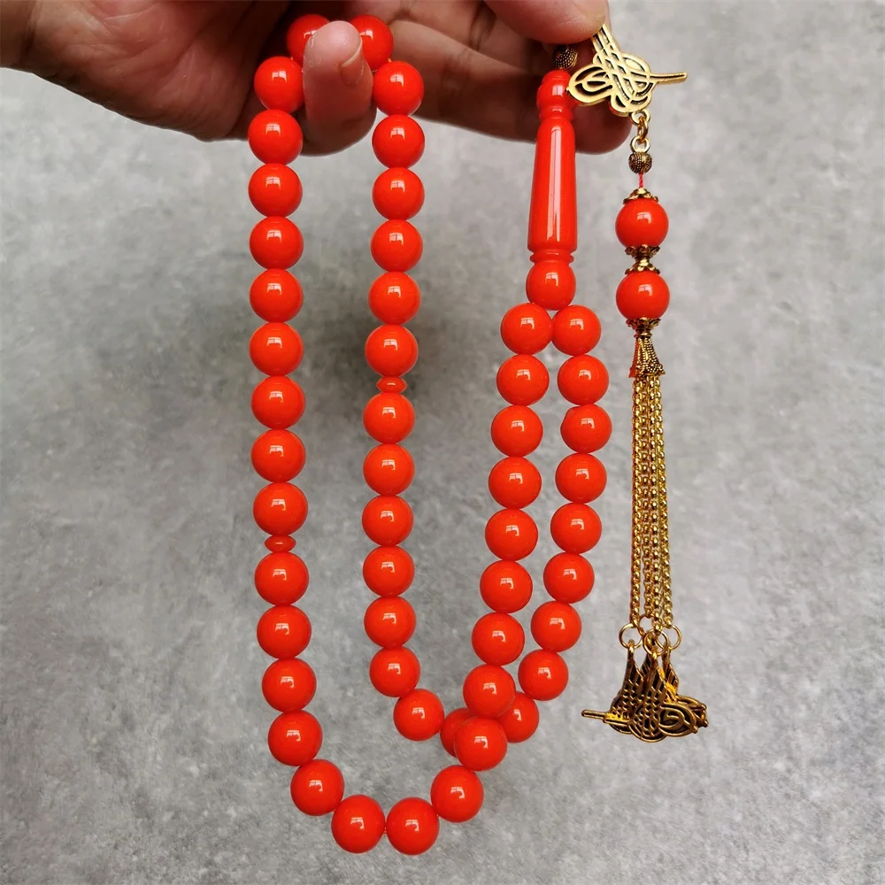 Resin Tasbih 33 Beads Man's Golden Resin Muslim rosary Red tassel Islam Fashion Gift bracelet Arabic Eid Misbaha