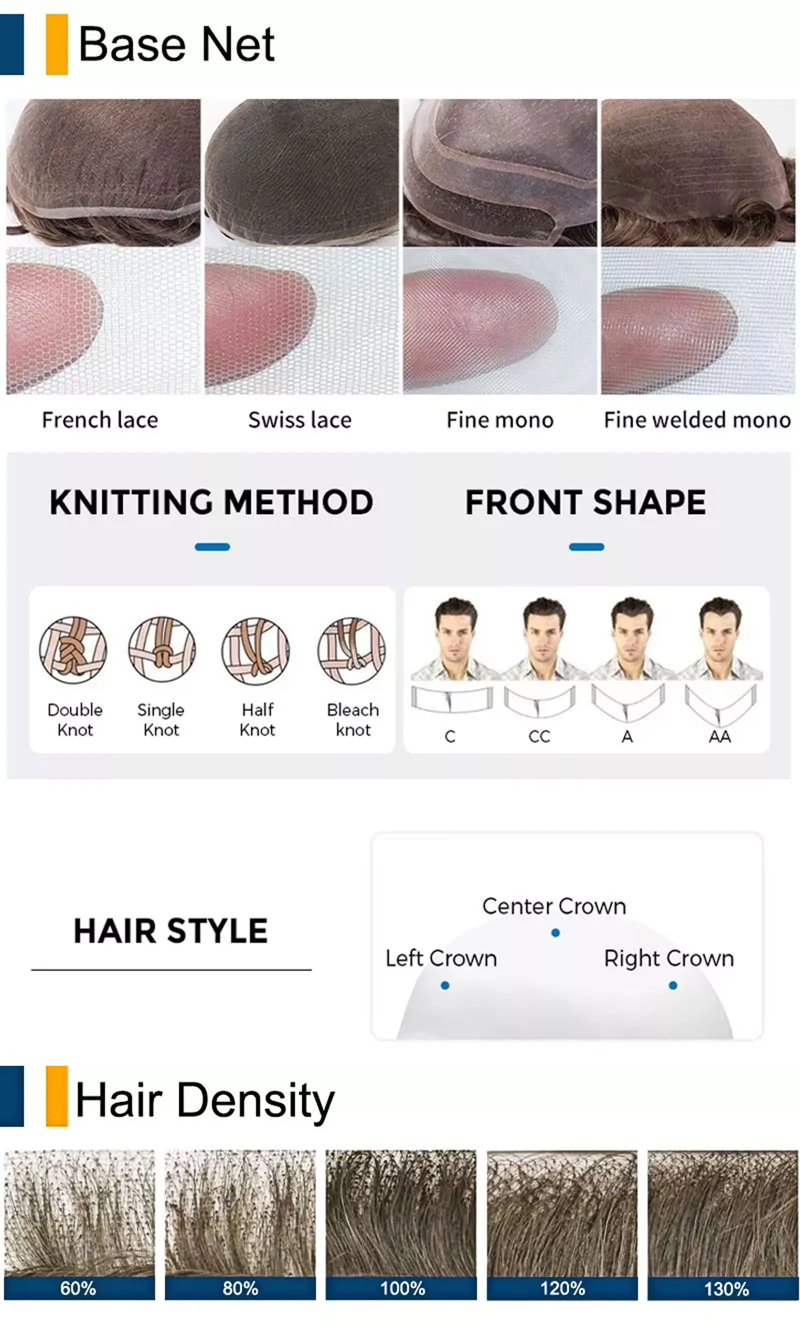 V-Looped hair on front hairline, Single Split Knots for the rest