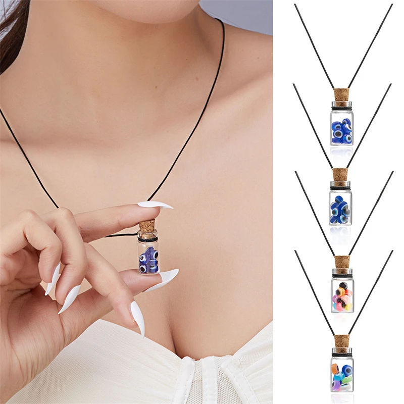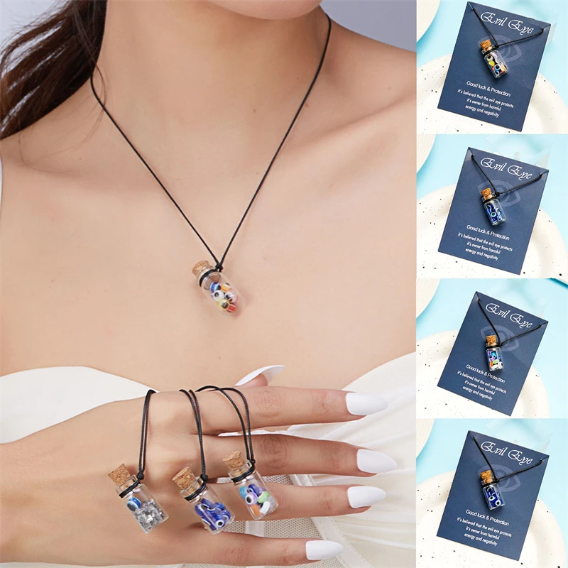 creative evils eye glass bottle drift bottle pendant necklace lucky neck jewelry