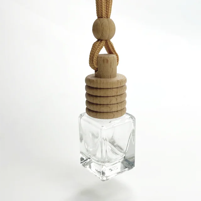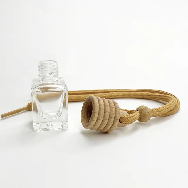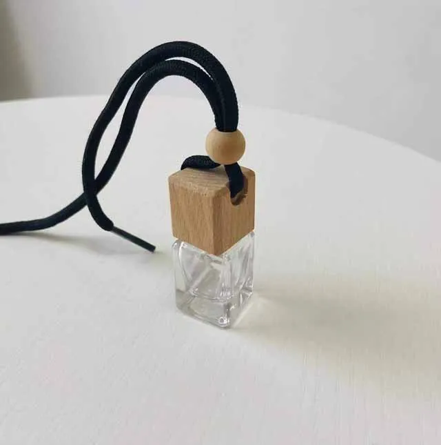 RTS 5ml Glass Bottles Hanging Wood Car Perfume for Air Conditioner Car Diffuser Bottle for Scented liquid