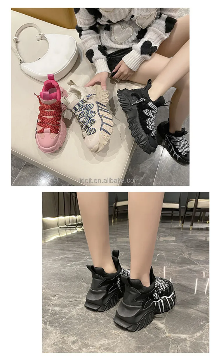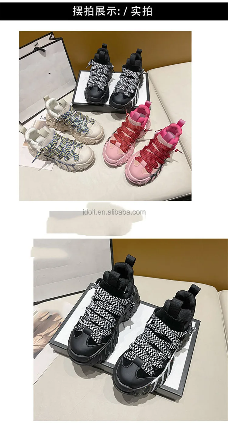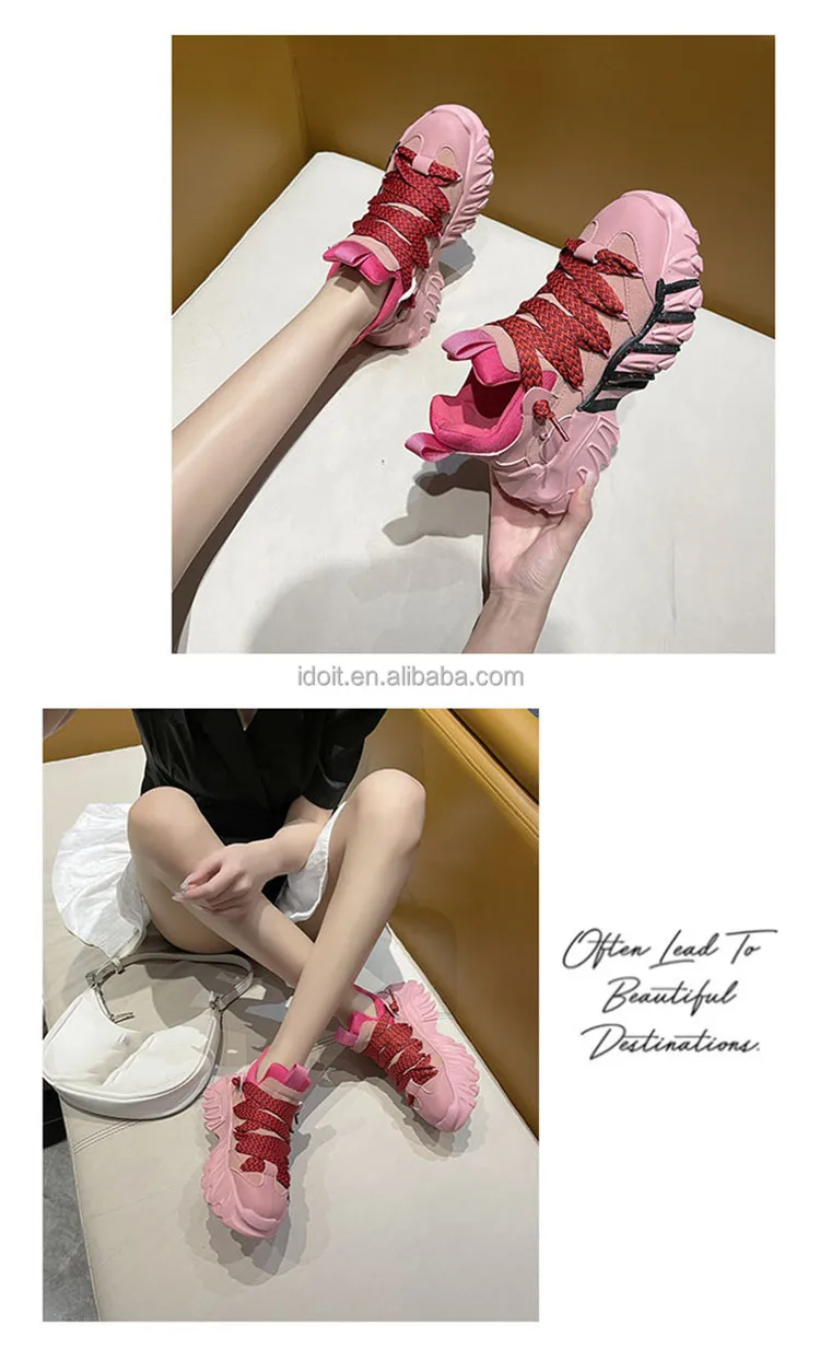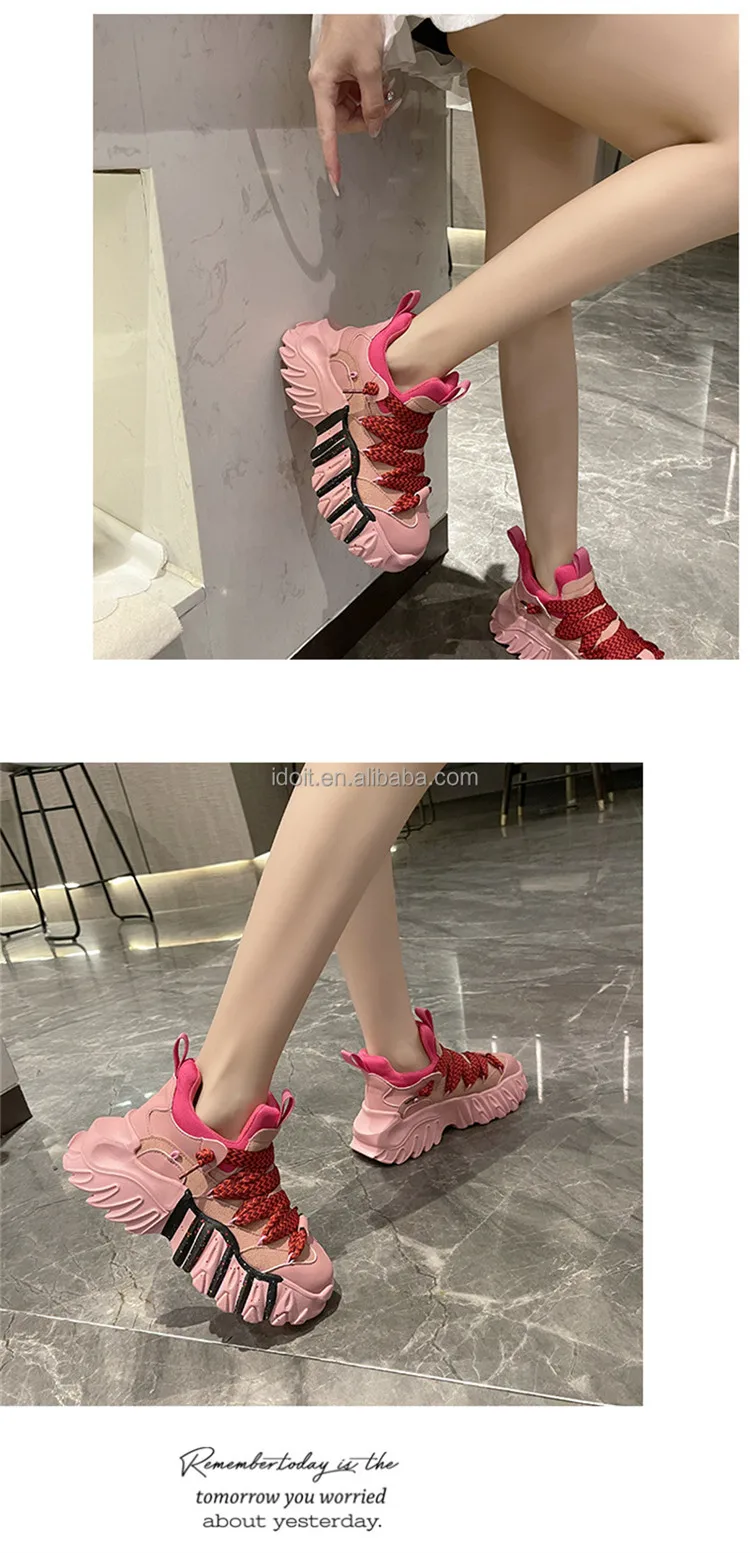 Sneakers Women 2023 Thick Sole Sport Shoes Pink Fashion Casual Lace Up Shoes