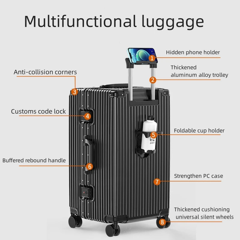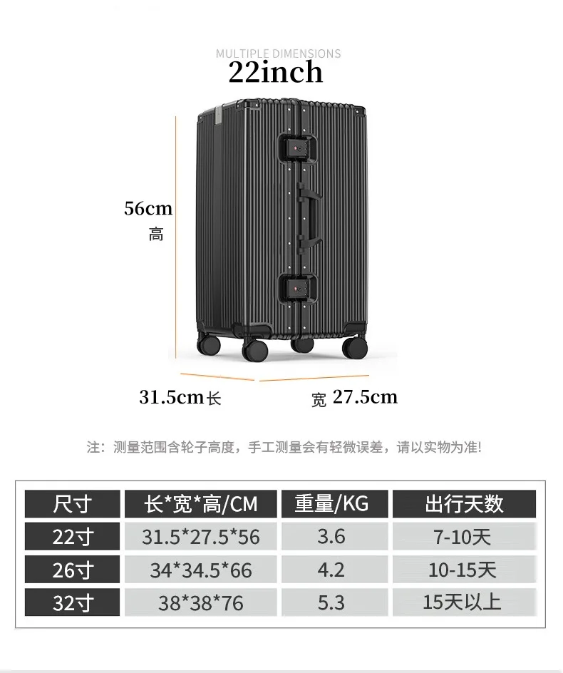 PC carry on luggage universal wheel 22 inch boarding case lightweight